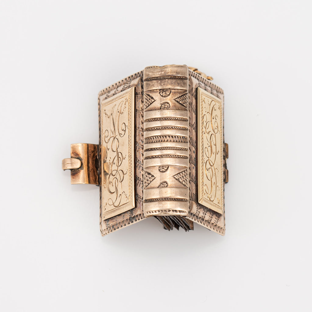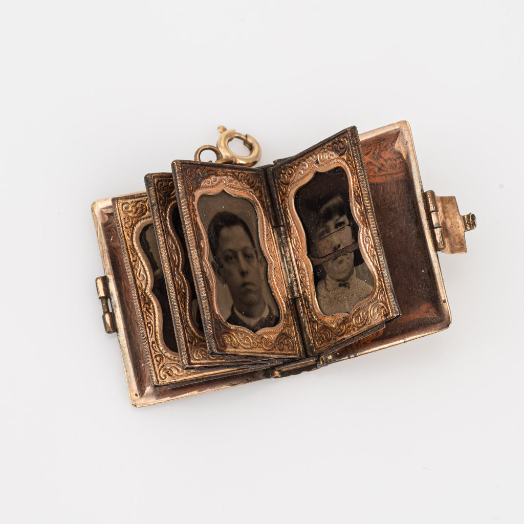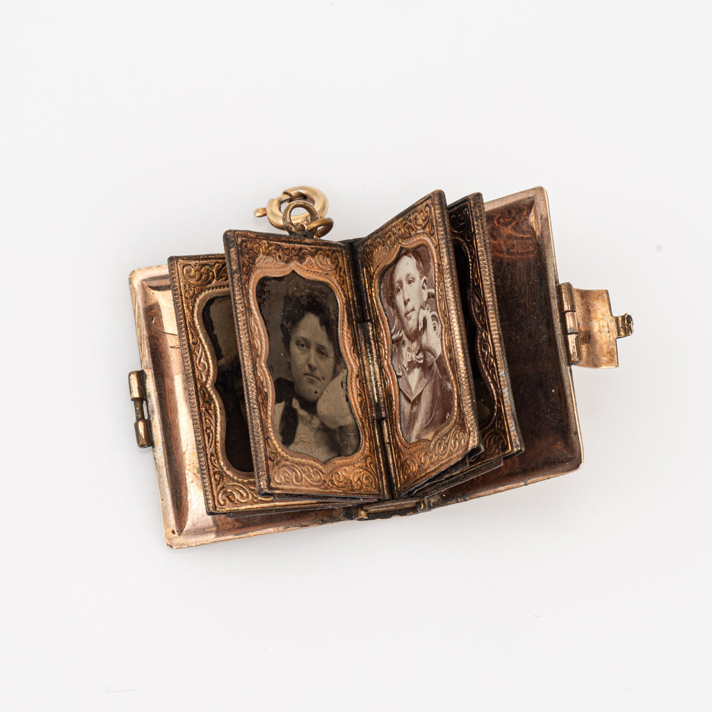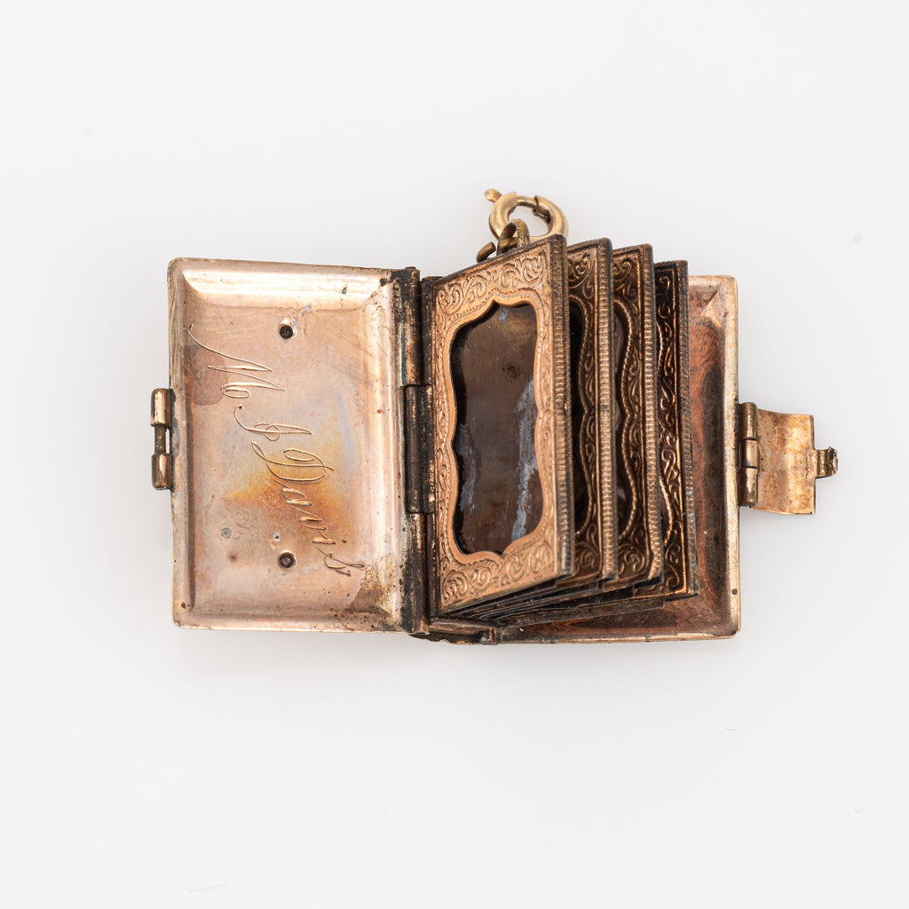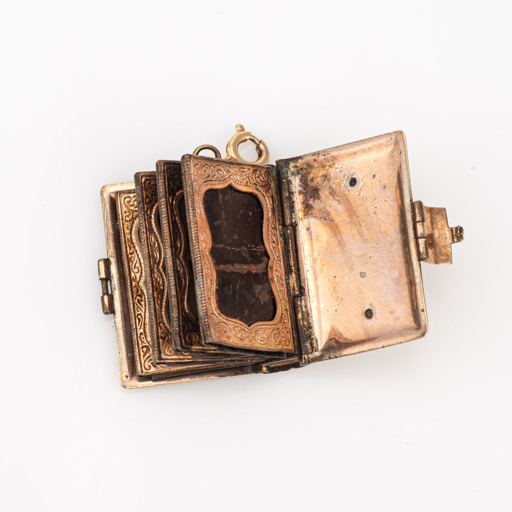 Antique Victorian Family Book Locket Charm 14k Rose Gold Pendant Opens 8 Photo
