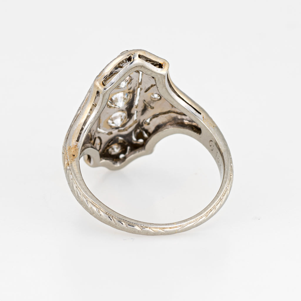 Finely detailed vintage Art Deco era ring (circa 1920s to 1930s) crafted in 18 karat white gold and platinum.