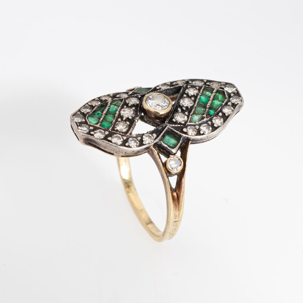 Stylish vintage diamond & emerald cocktail ring crafted in 18 karat yellow gold.