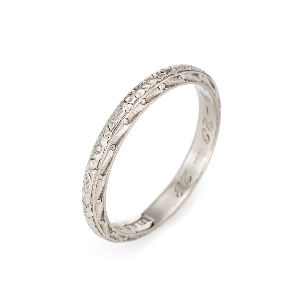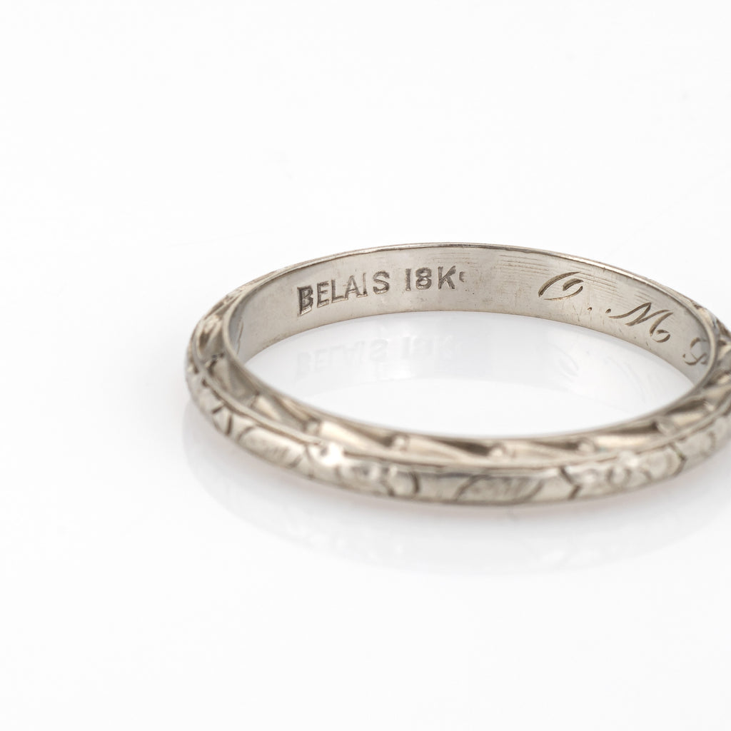 Vintage Art Deco Belais Wedding Band Sz 8.5 18k White Gold Ring Vintage Fine