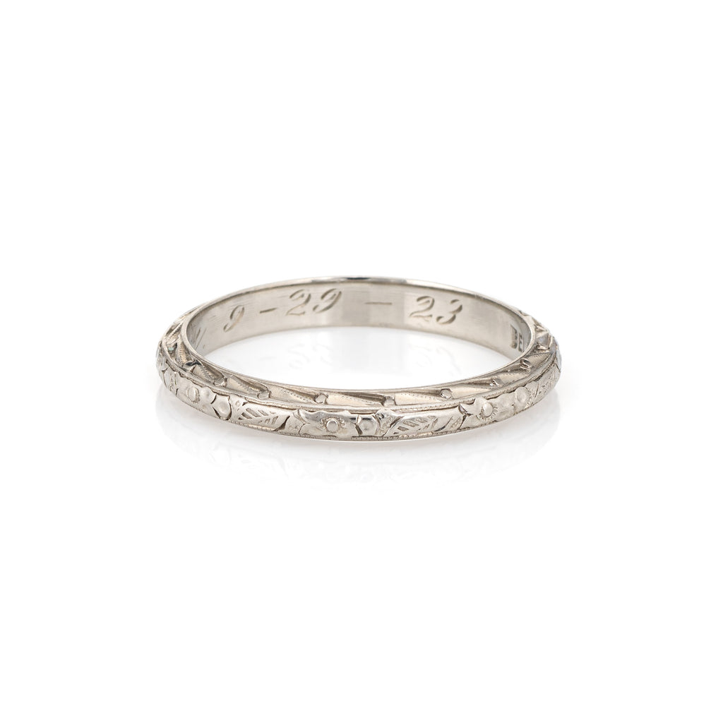 Art Deco era wedding band (circa 1923) crafted in 18 karat white gold, made by Belais.
