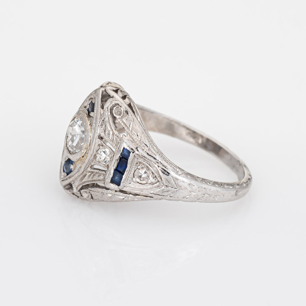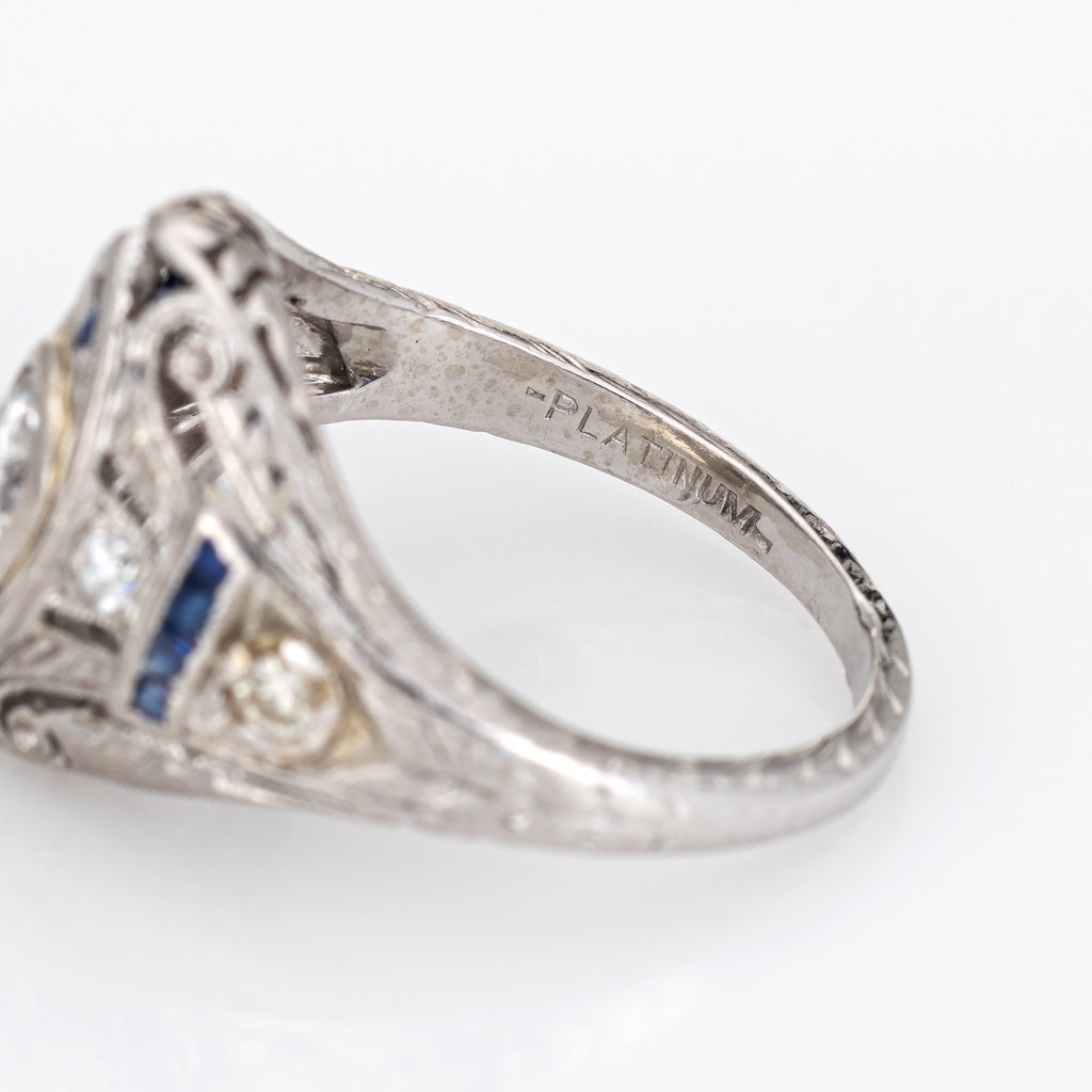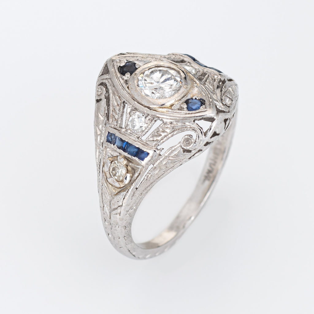 Finely detailed vintage Art Deco era diamond & sapphire ring (circa 1920s to 1930s) crafted in 900 platinum.
