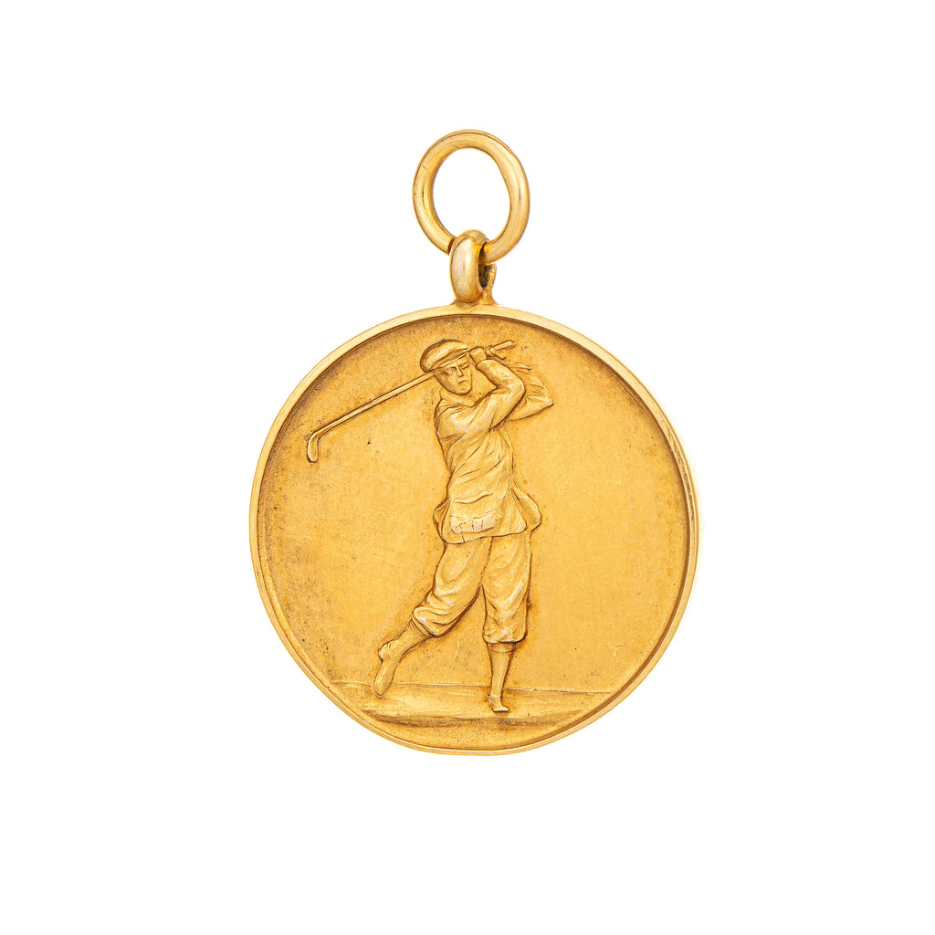 The beautifully detailed medallion dates to 1927, designed with a golf motif. Medallions were popular around the 1900s along with watch chains and fobs. The medallion/pendant is in very good condition with patina evident. Great for wear on a chain with a larger 5mm bale that can accommodate a thicker chain if desired.