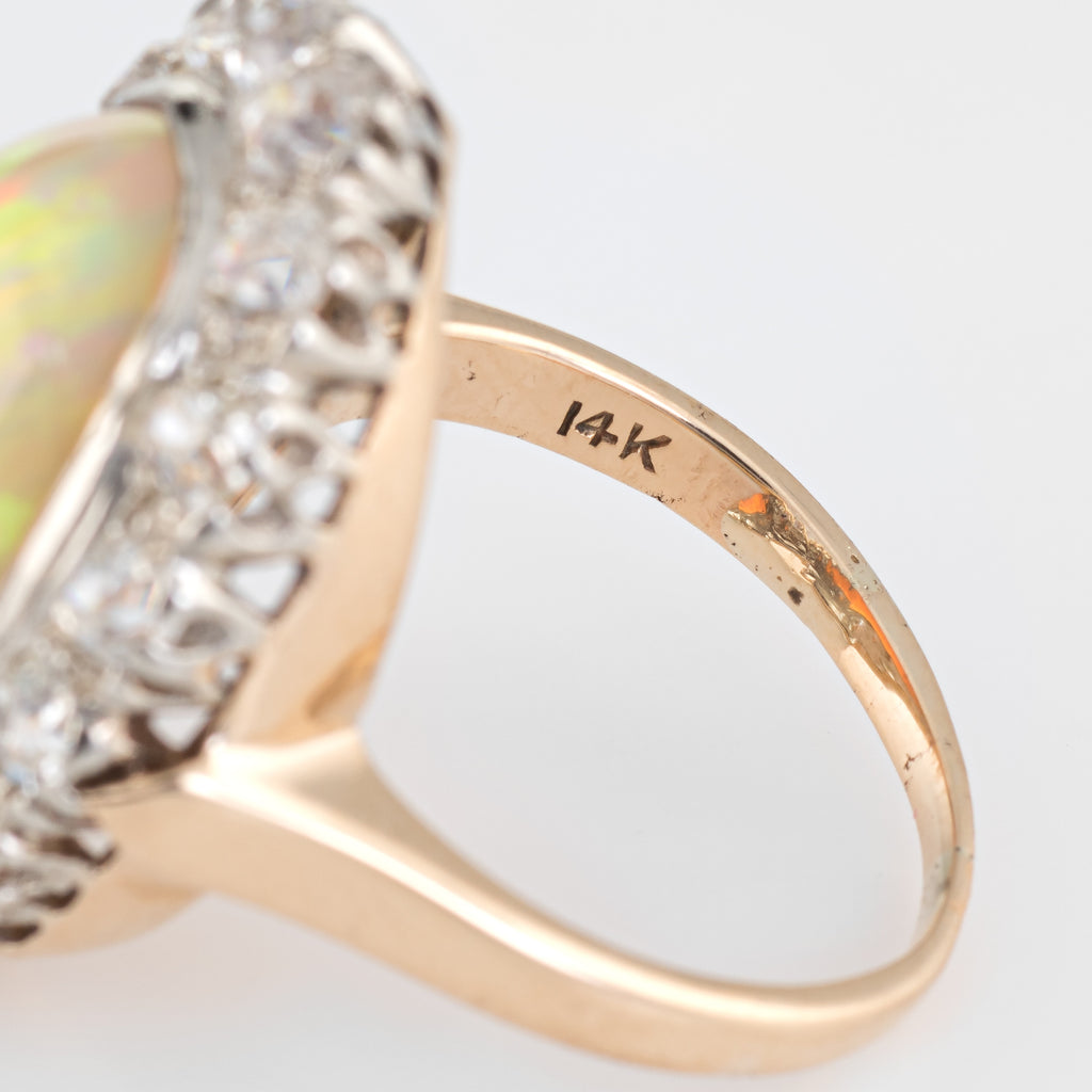 Striking vintage opal & diamond ring (circa 1920s to 1930s), crafted in 14 karat yellow gold.