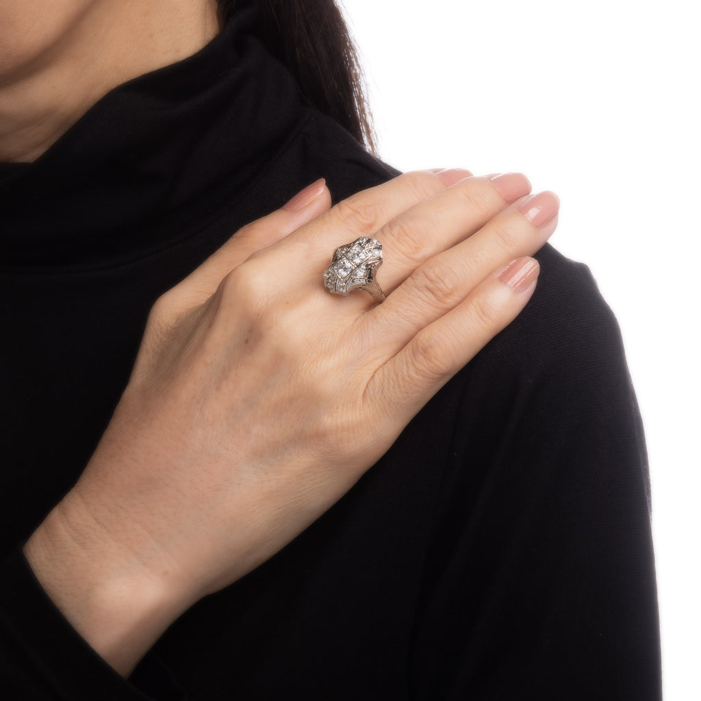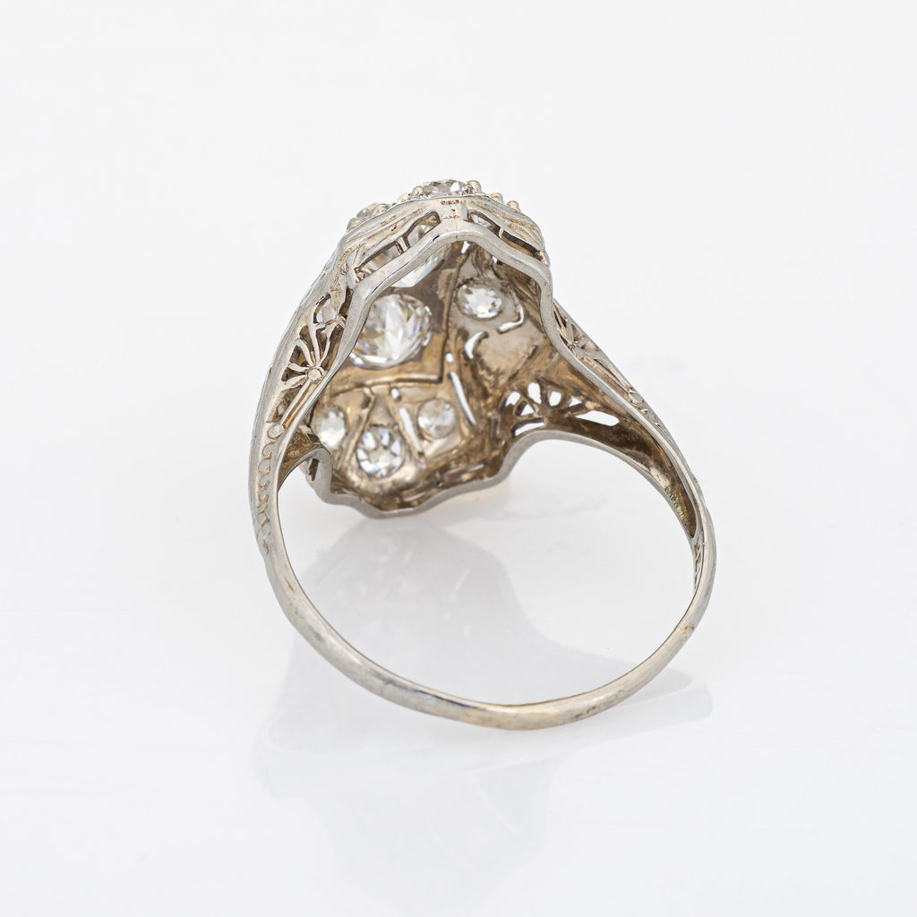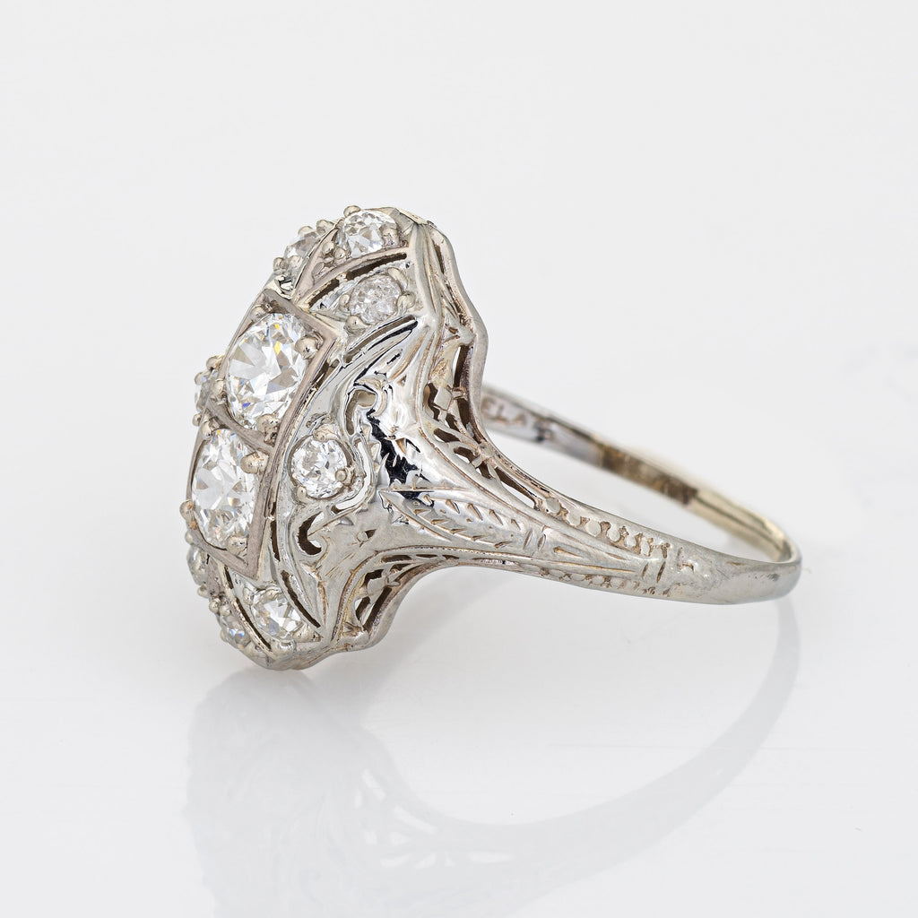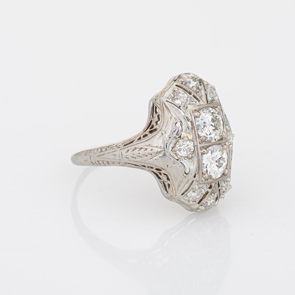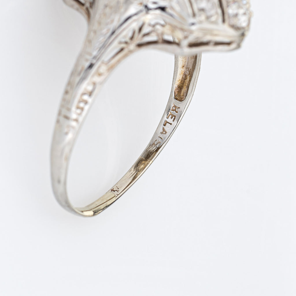 Elegant & finely detailed Belais Art Deco era ring (circa 1920s to 1930s) crafted in 14k white gold.