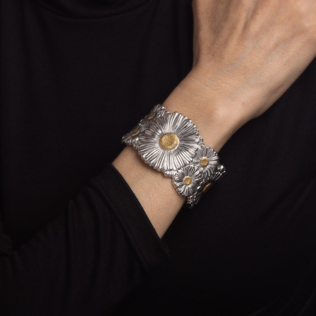 Buccellati Flower Bracelet Wide Cuff Daisy Sterling Silver Fine Jewelry Italy