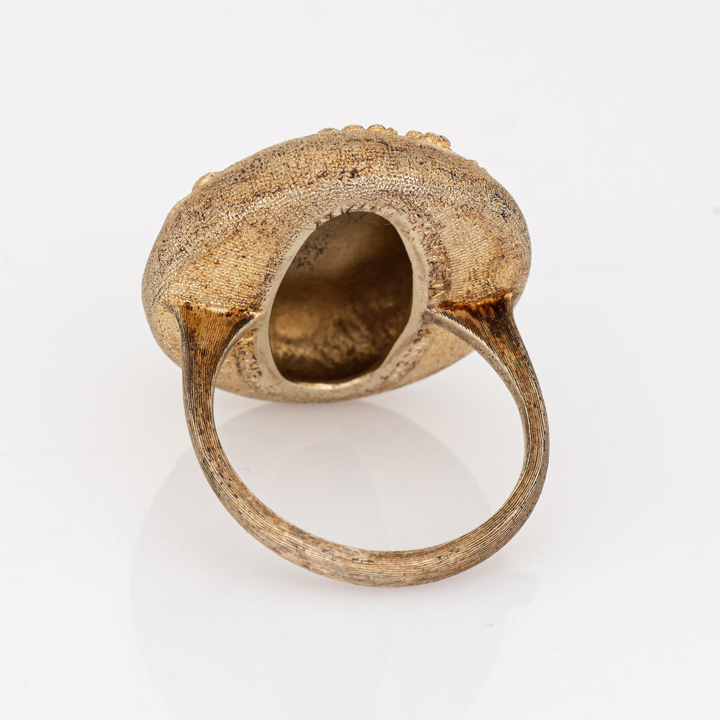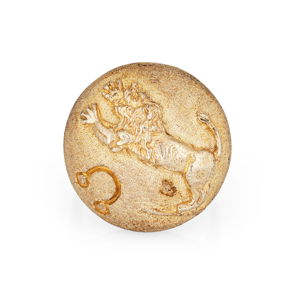 The finely detailed ring features a lion to the round domed mount. Designed by Gianmaria Buccellati the ring is a great example of the intricate work from the famed Italian jewelry house. The medium rise ring (10mm - 0.39 inches) sits comfortably on the finger.