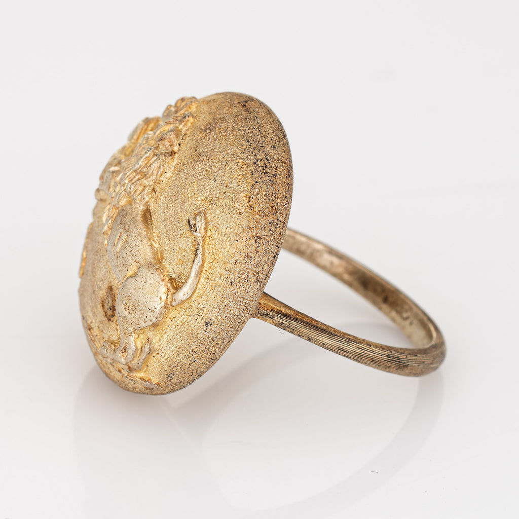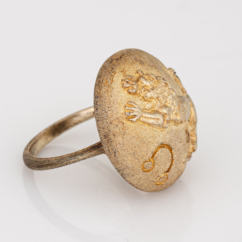 Stylish vintage Buccellati Leo zodiac ring crafted in sterling silver gilt.