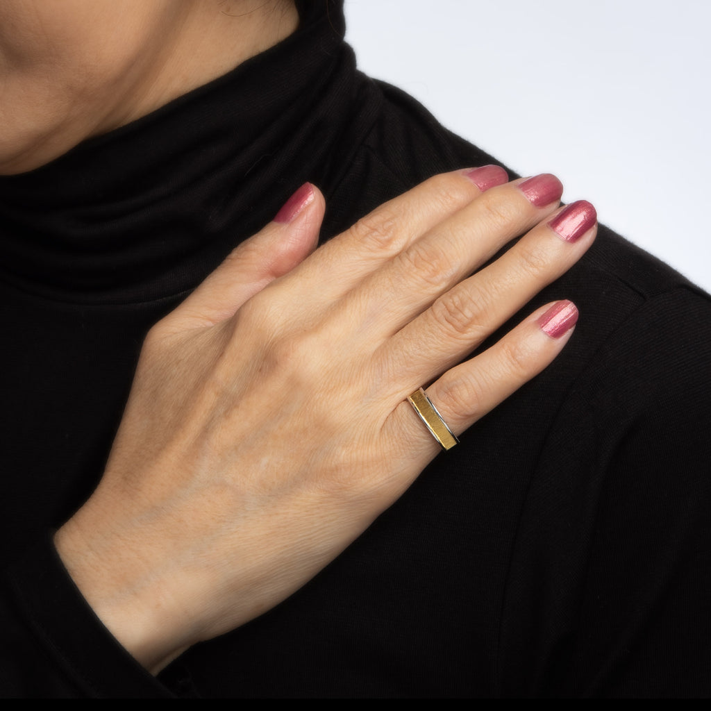 Estate Gianmaria Buccellati band crafted in 18k yellow & white gold (circa 1990s).