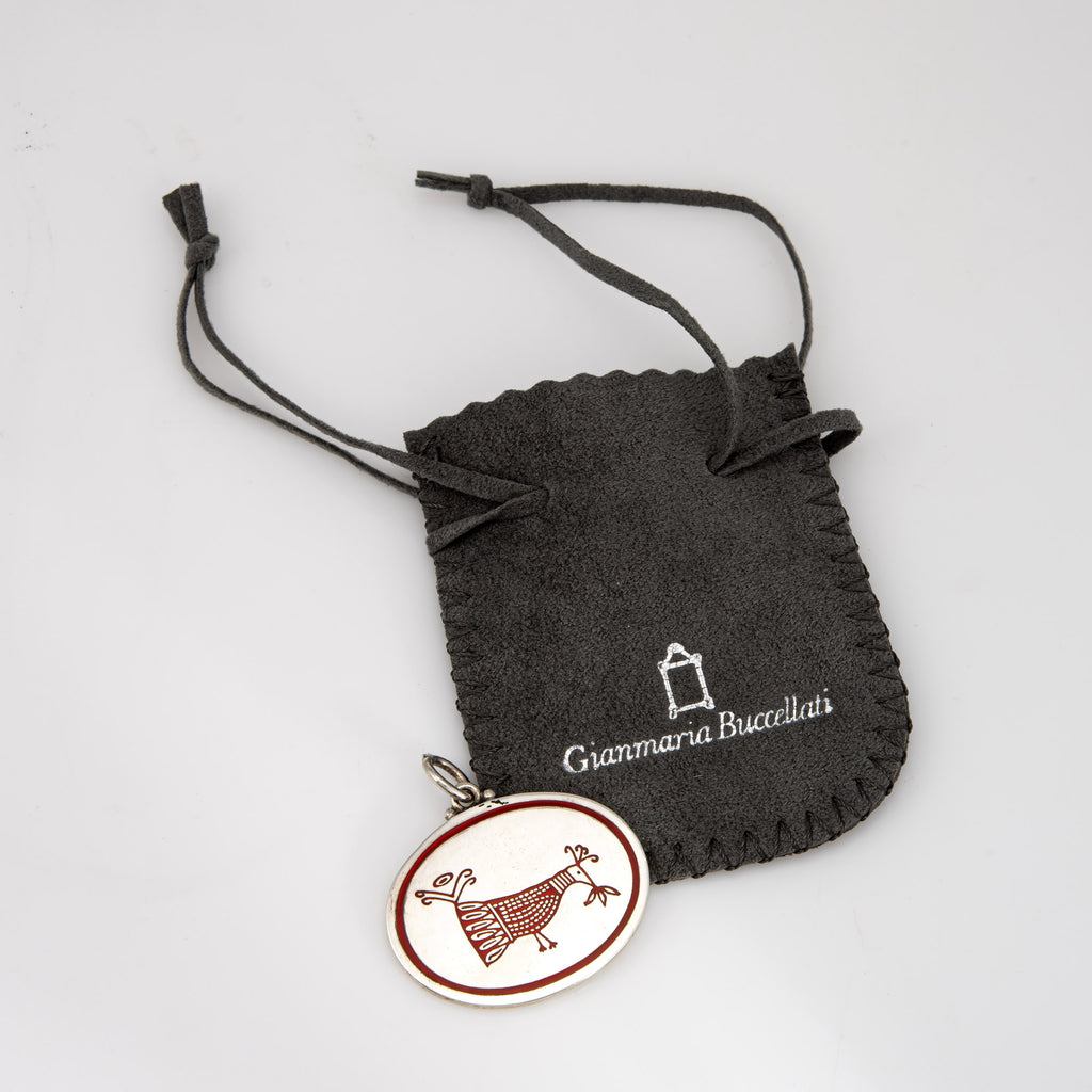 Gianmaria Buccellati Bird Medallion Pendant Sterling Silver Red Enamel Estate