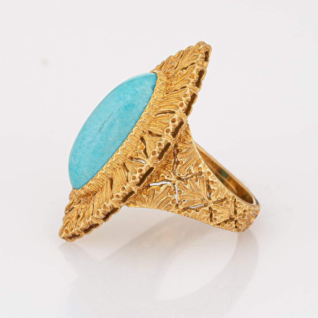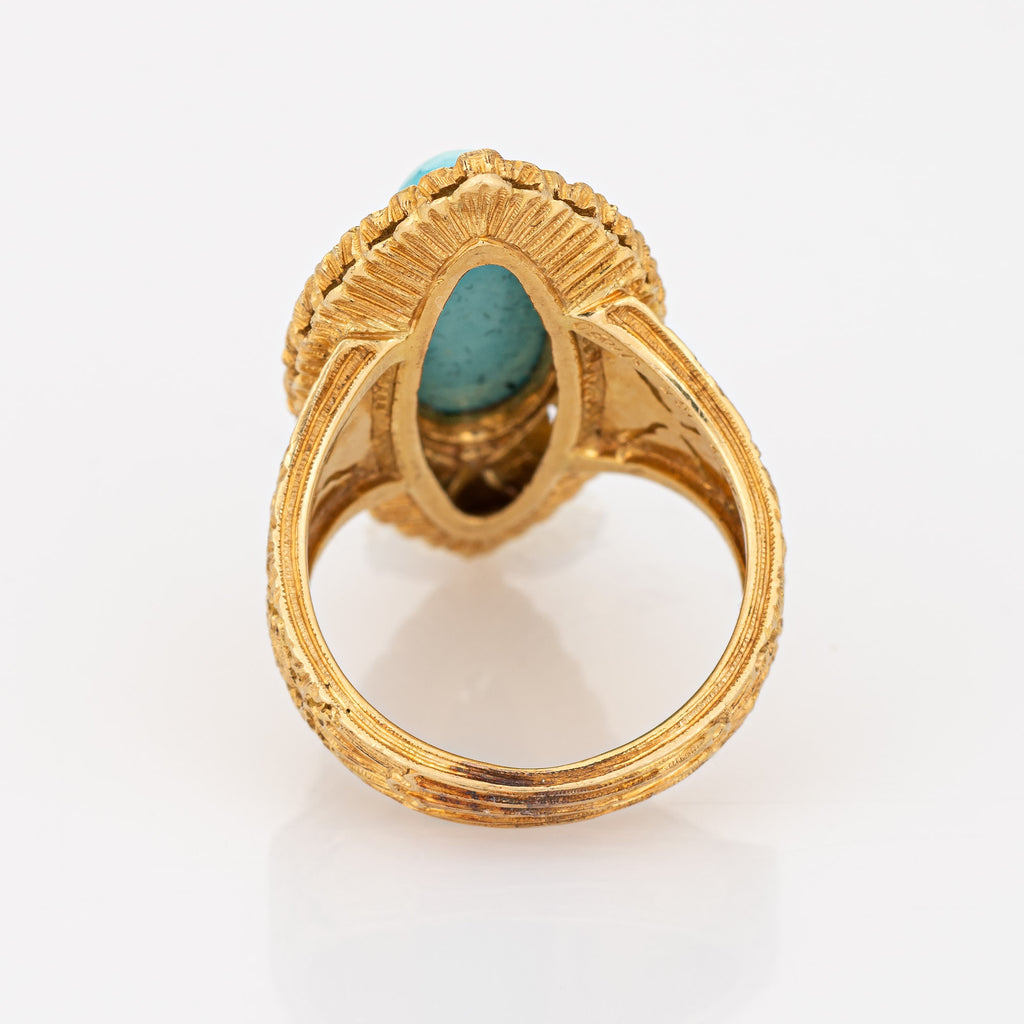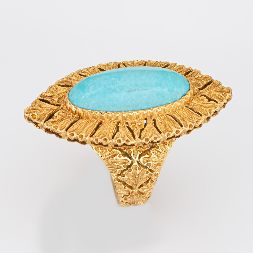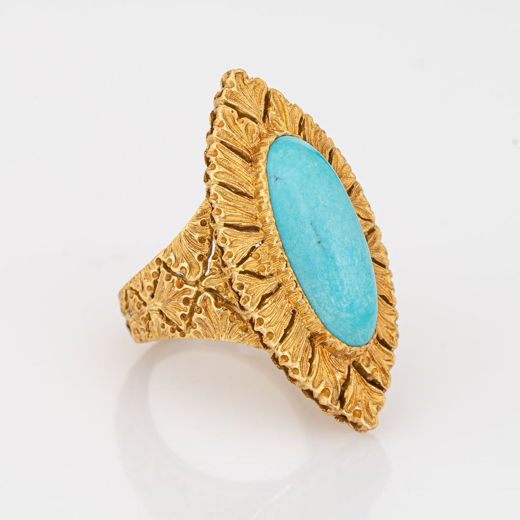 Gianmaria Buccellati Turquoise Ring Vintage 18k Yellow Gold Sz 6 Navette