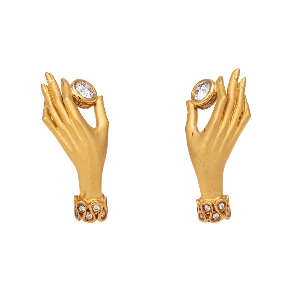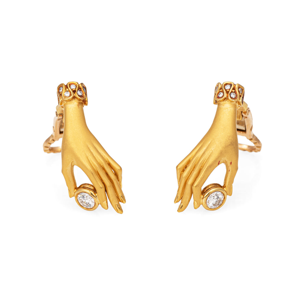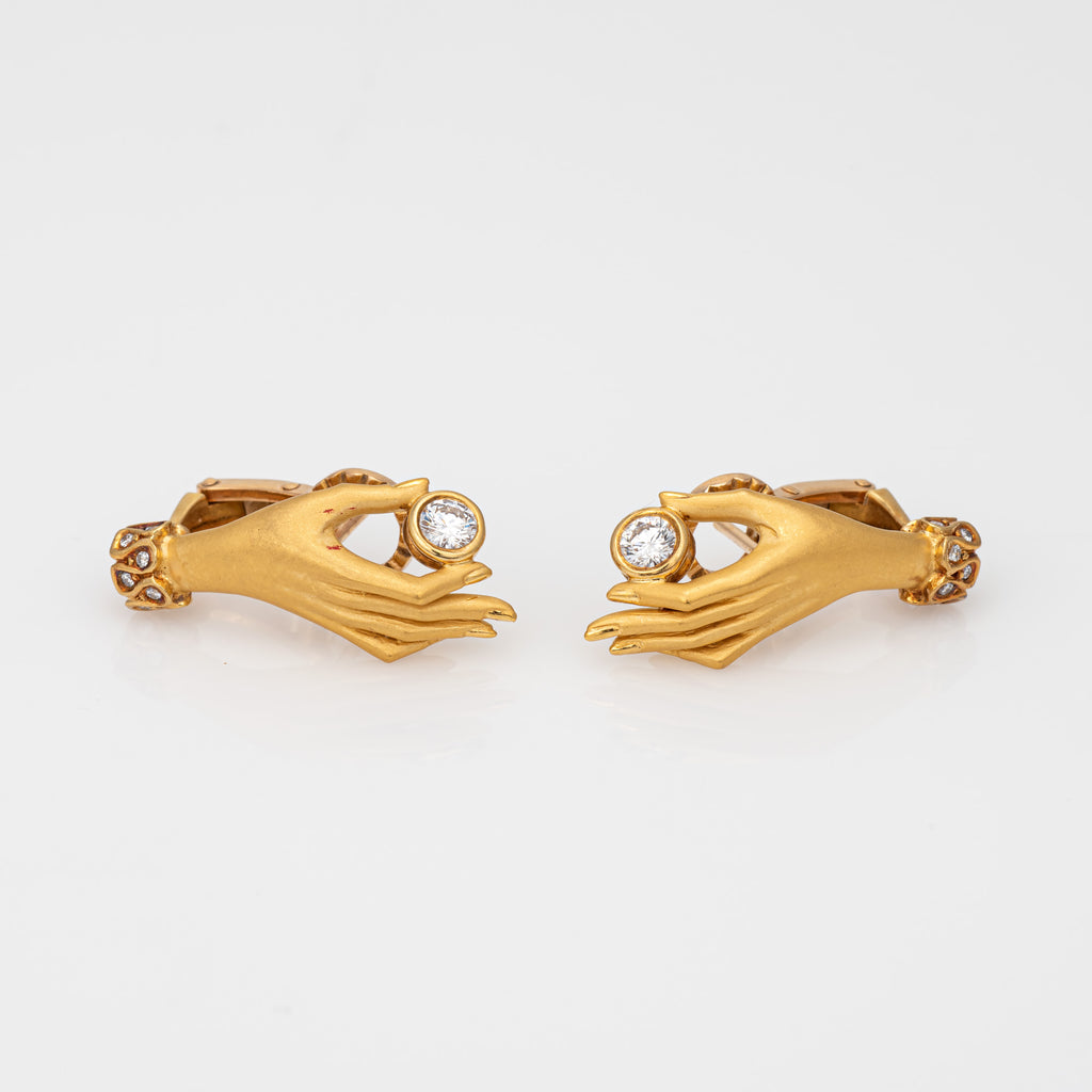 Estate Carrera y Carrera diamond hand earrings crafted in 18 karat yellow gold (circa 2008).