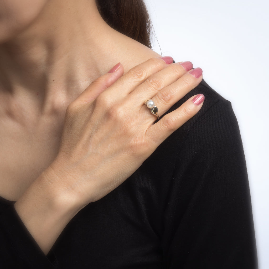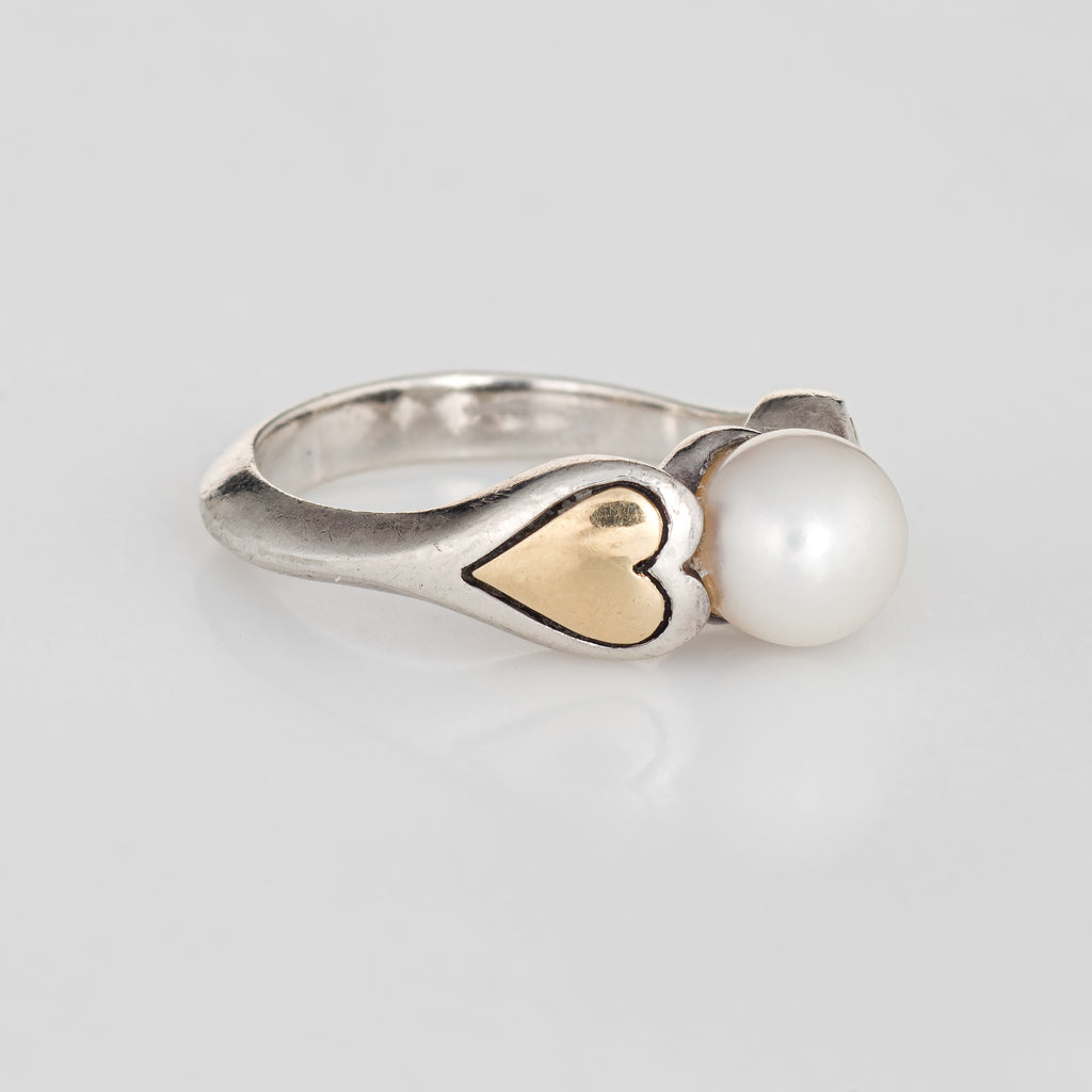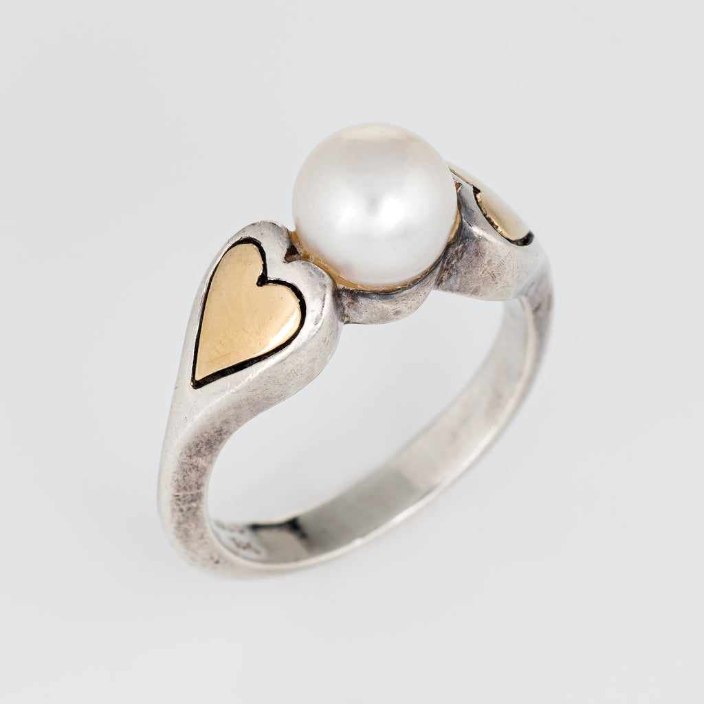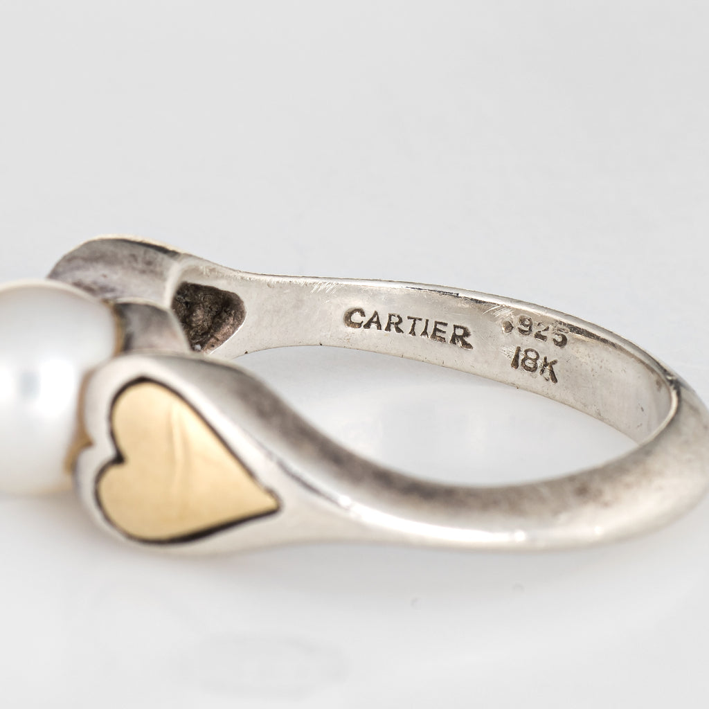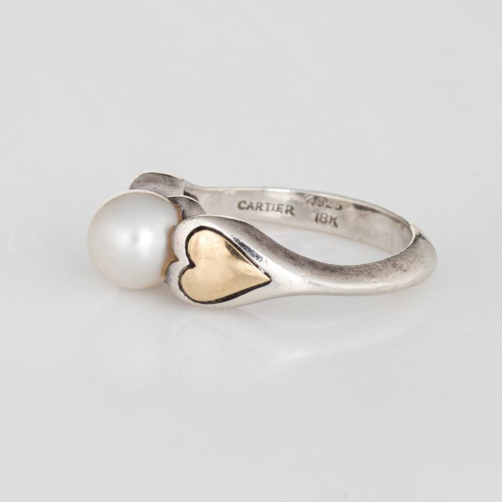 Cartier Cultured Pearl Ring Vintage Hearts 18k Gold Sterling Silver 5.25 Estate