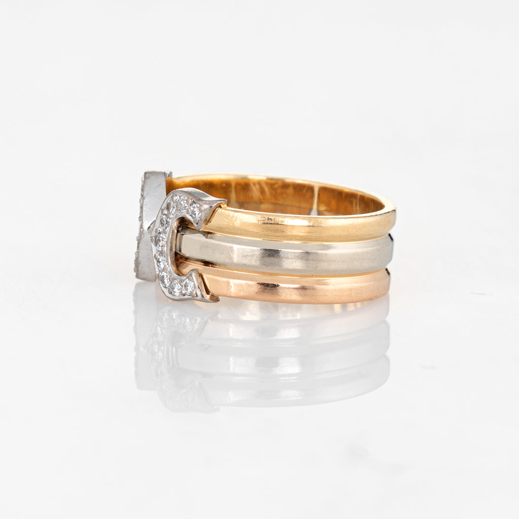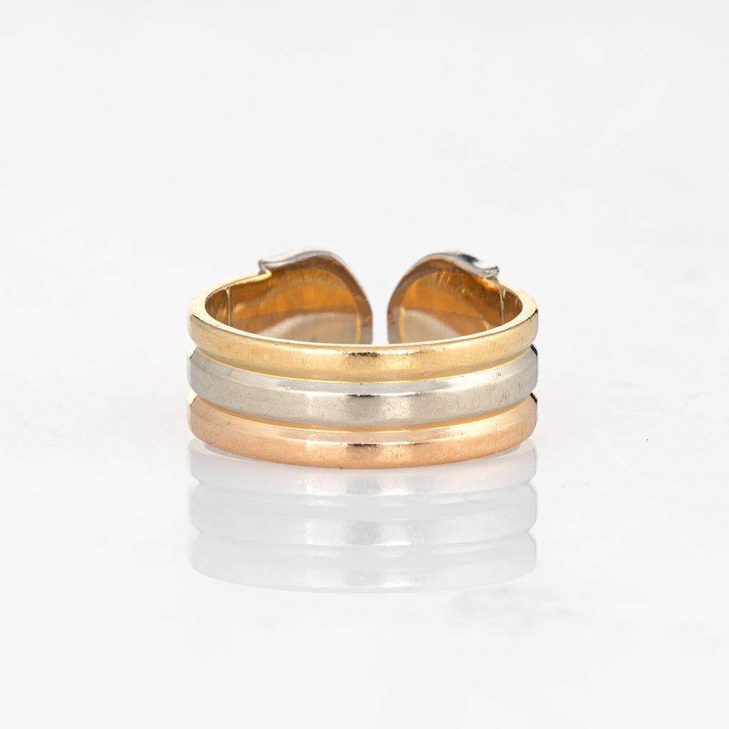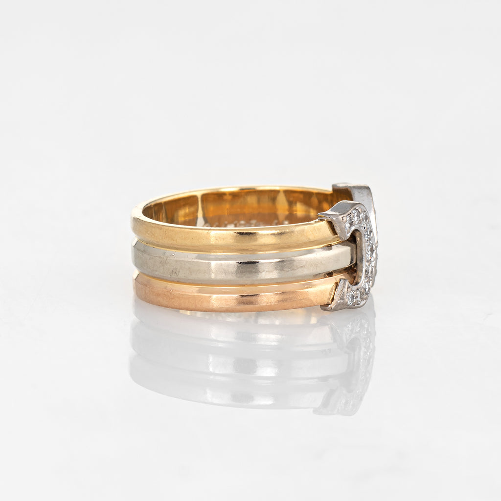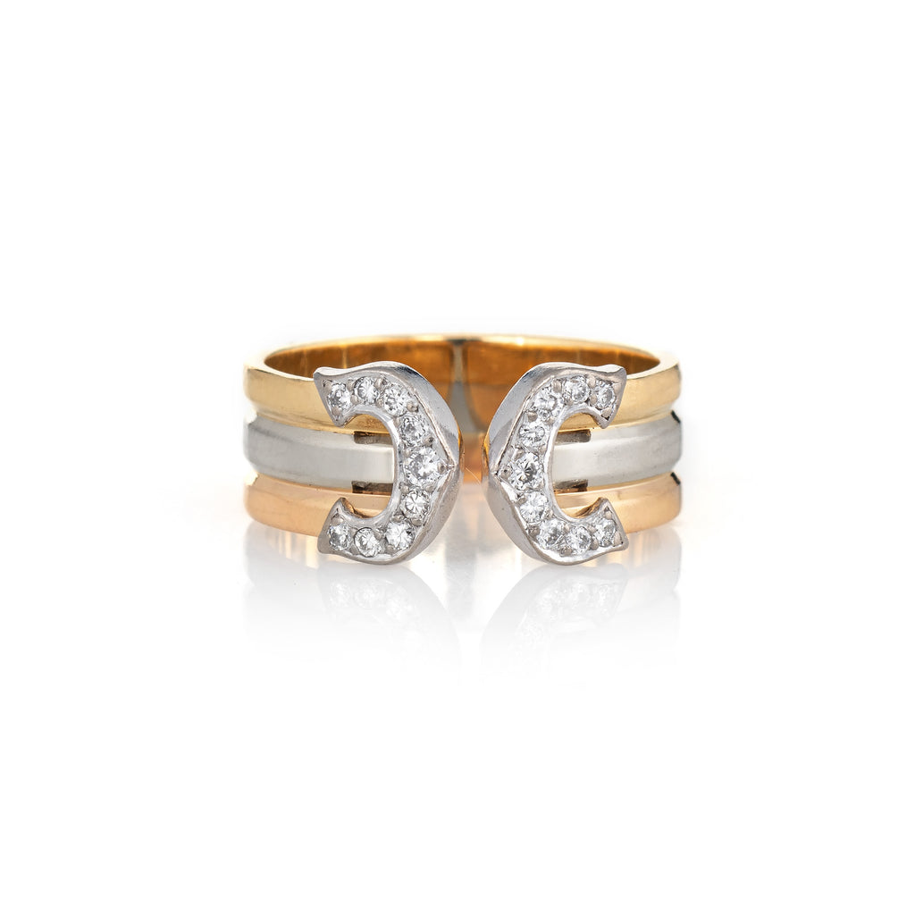 Vintage Cartier Double C diamond band crafted in 18 karat yellow, white & rose gold.