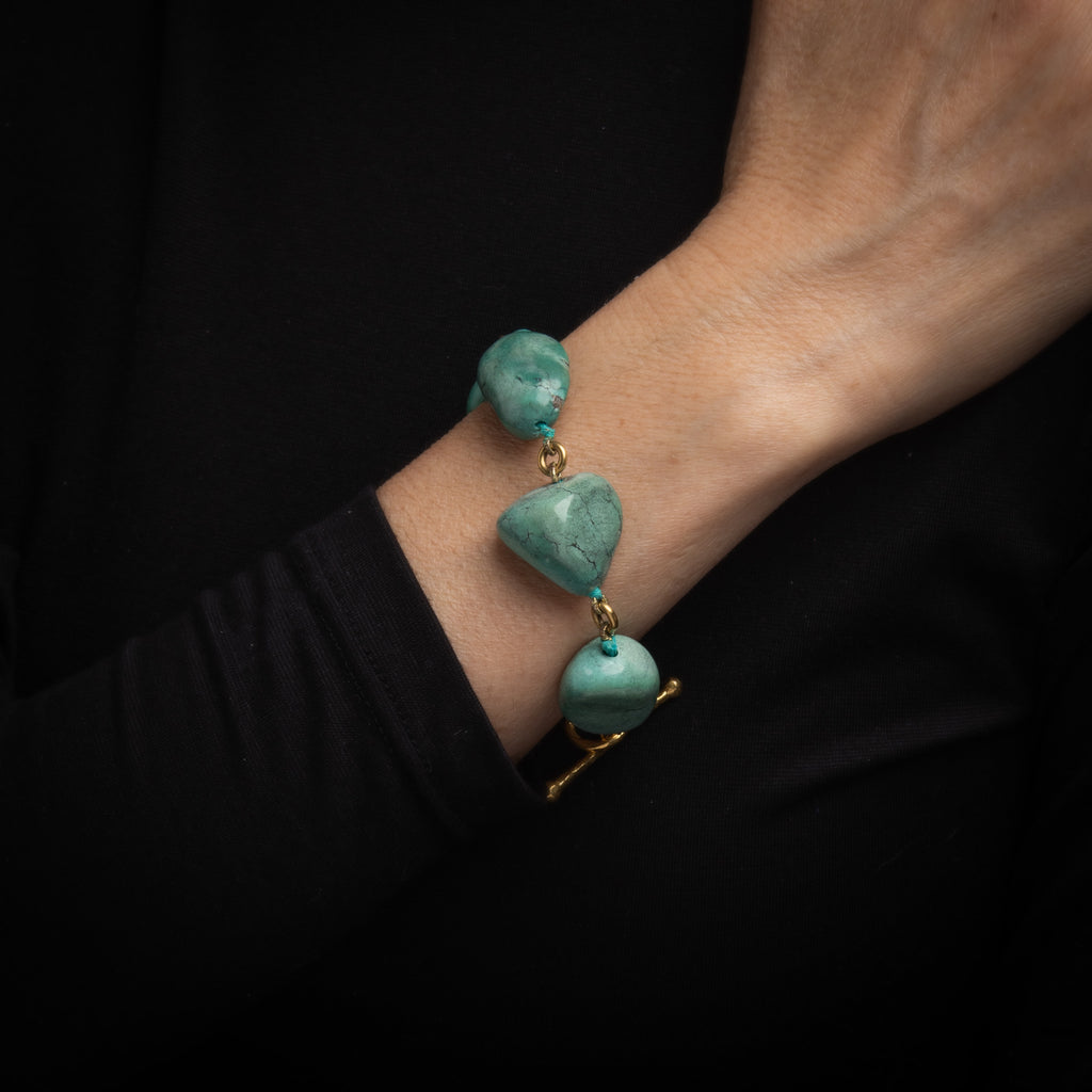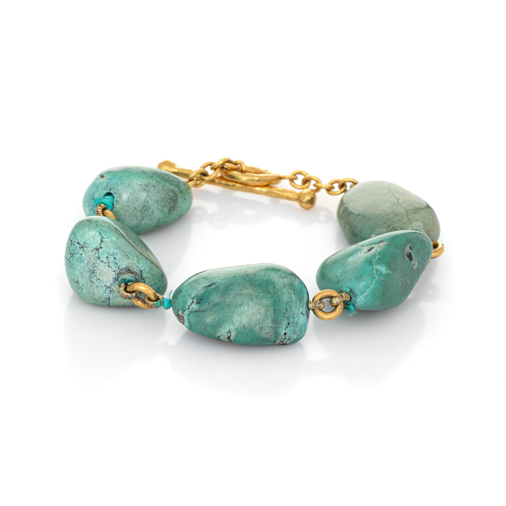 Cathy Waterman Turquoise Bracelet Estate 22k Yellow Gold Fine Designer Jewelry