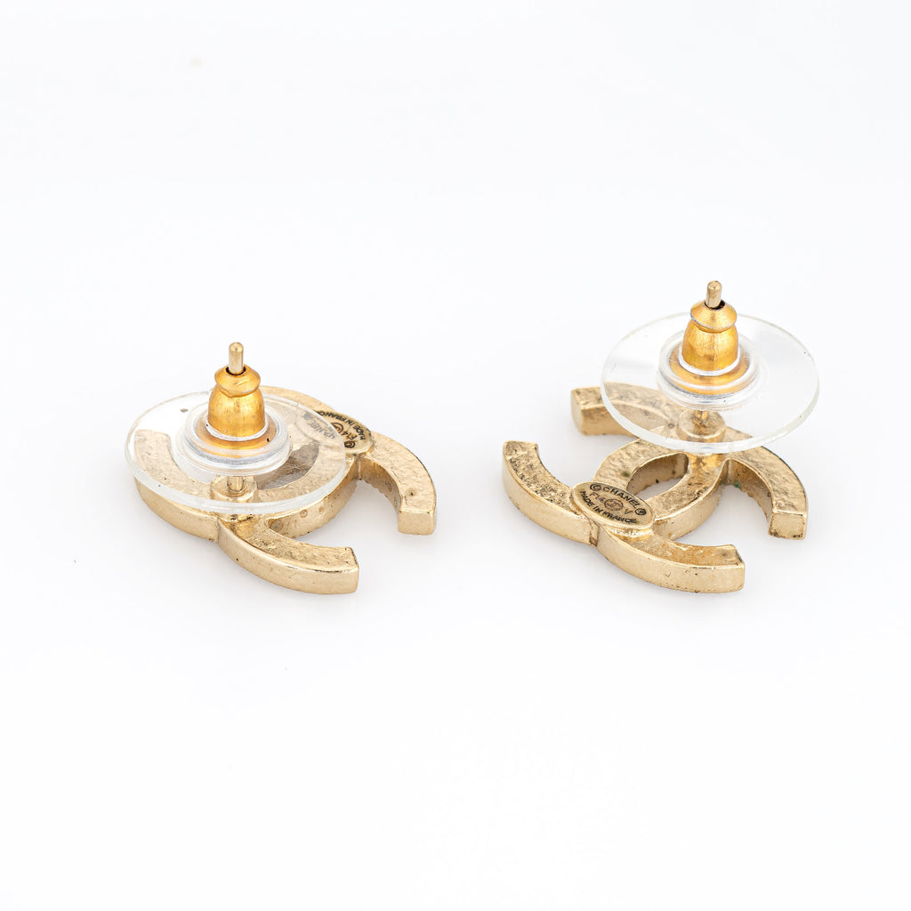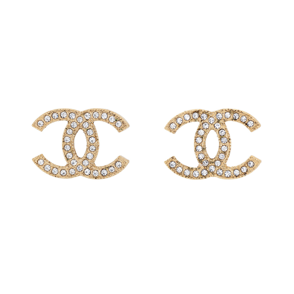 2014 Chanel CC Logo Crystal Earrings Studs Yellow Gold Tone