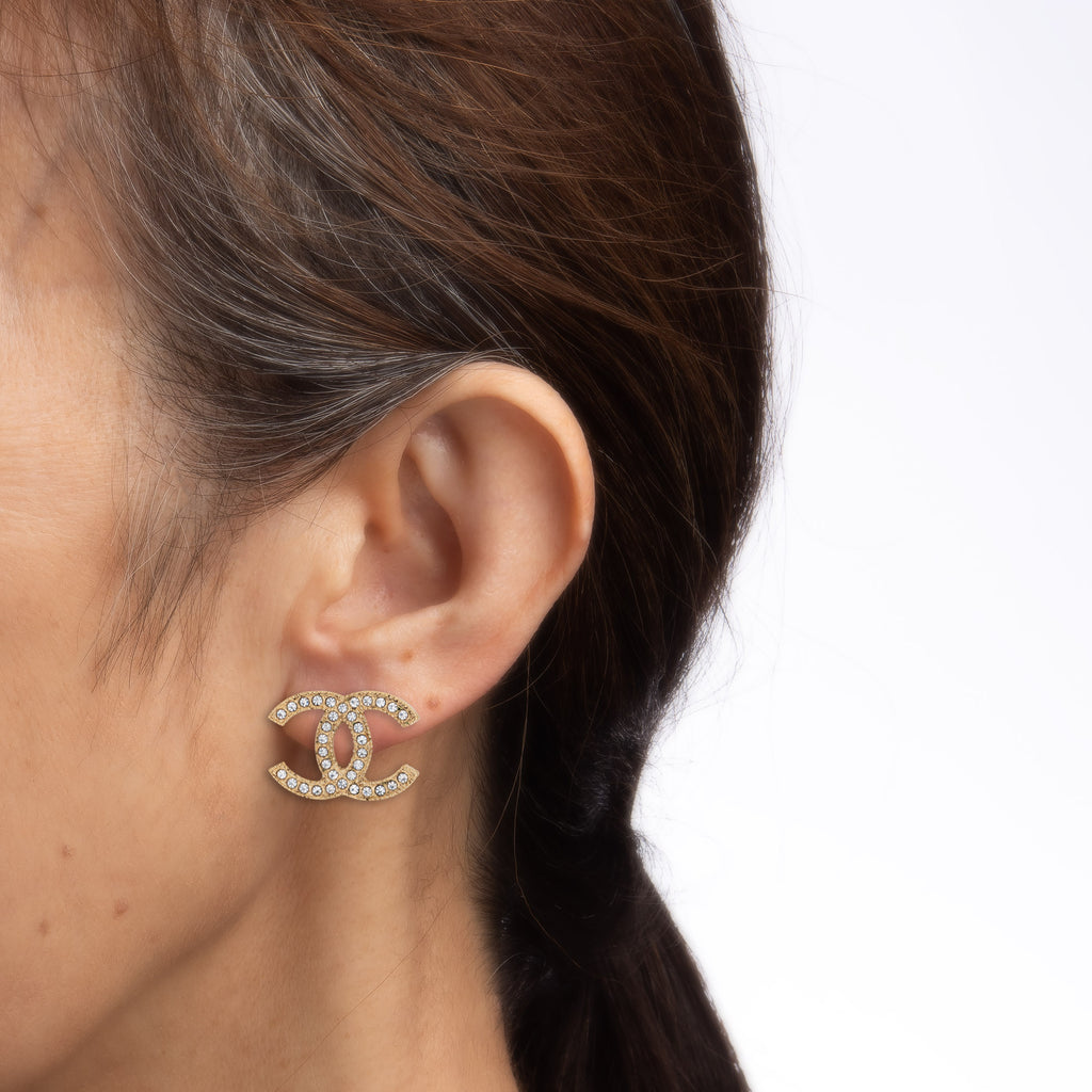 Crystals are set into the 'CCs', with the crystals intact and in good condition. The earrings measure 0.47 x 0.62 inches and sit nicely on the earlobe. The earrings are fitted with posts and push-backings for pierced ears. The earrings date to 2014 and come with a Chanel box.