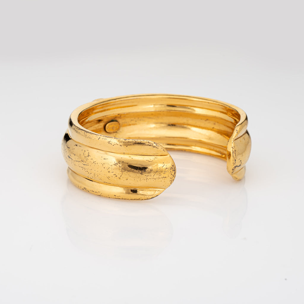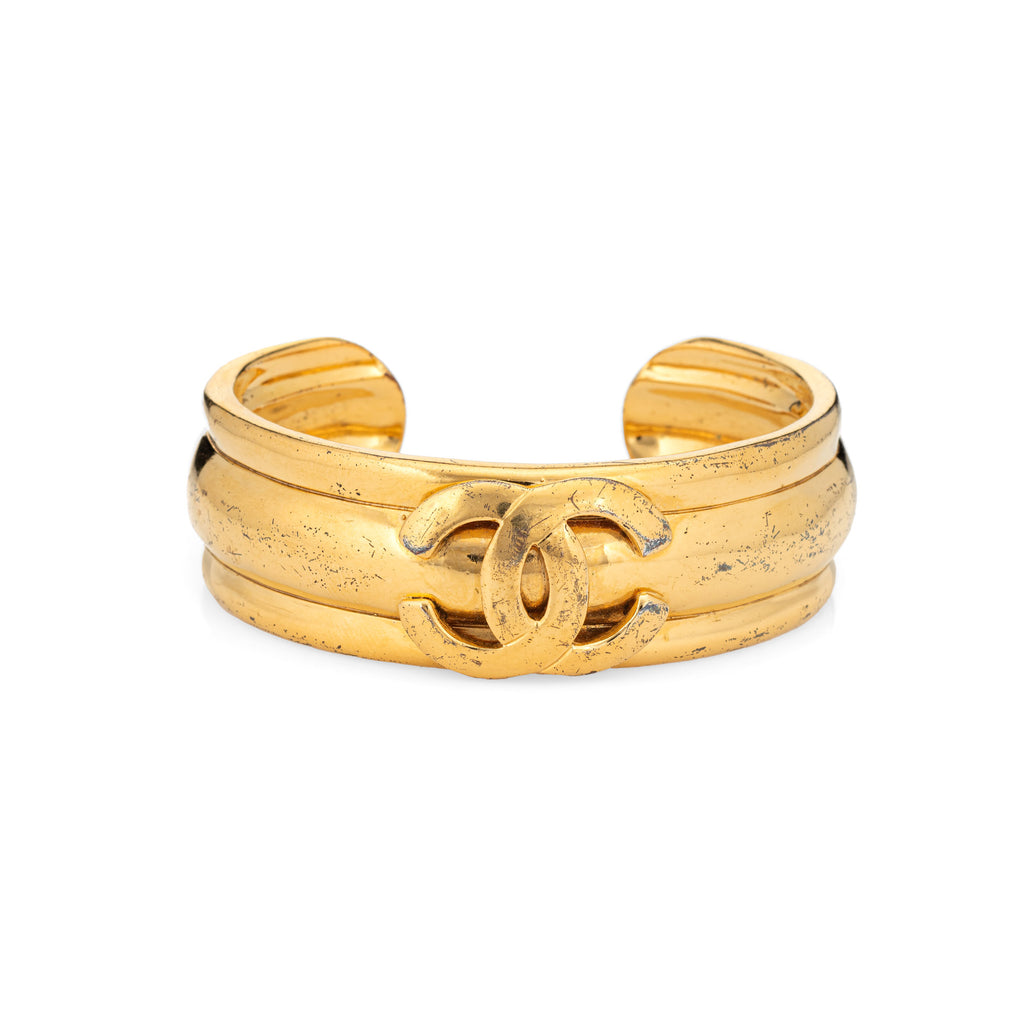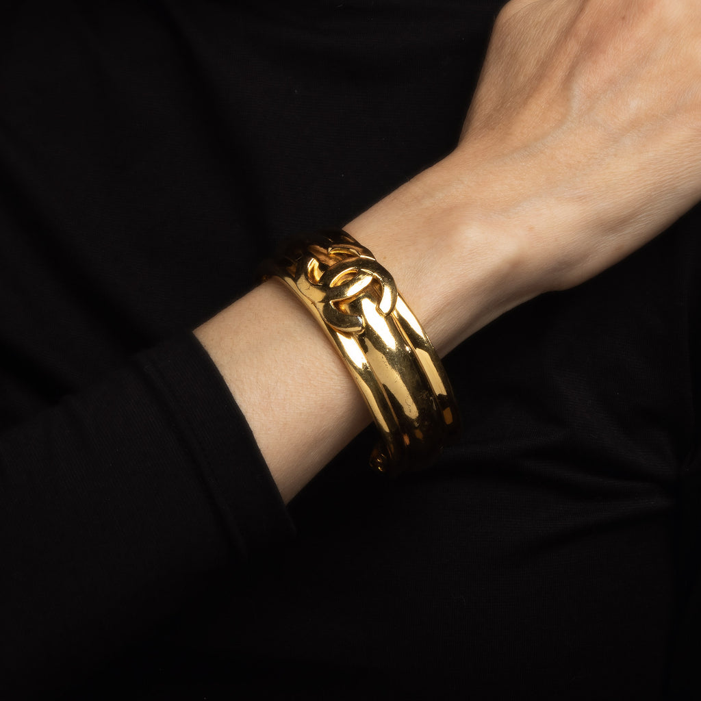 Vintage Chanel CC Logo Cuff Bracelet c1997 Yellow Gold Tone