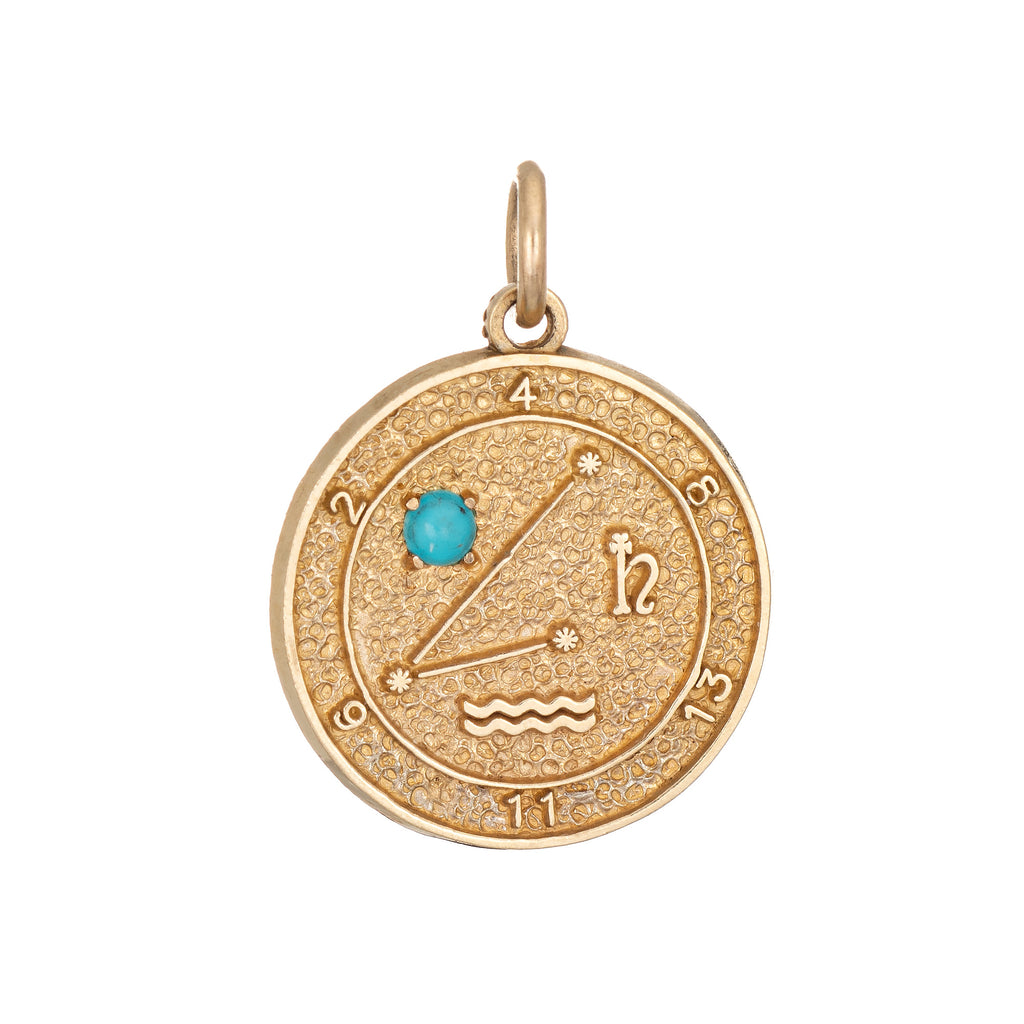 Aquarius Zodiac Sign Charm Turquoise Vintage 14k Yellow Gold Astrology Pendant