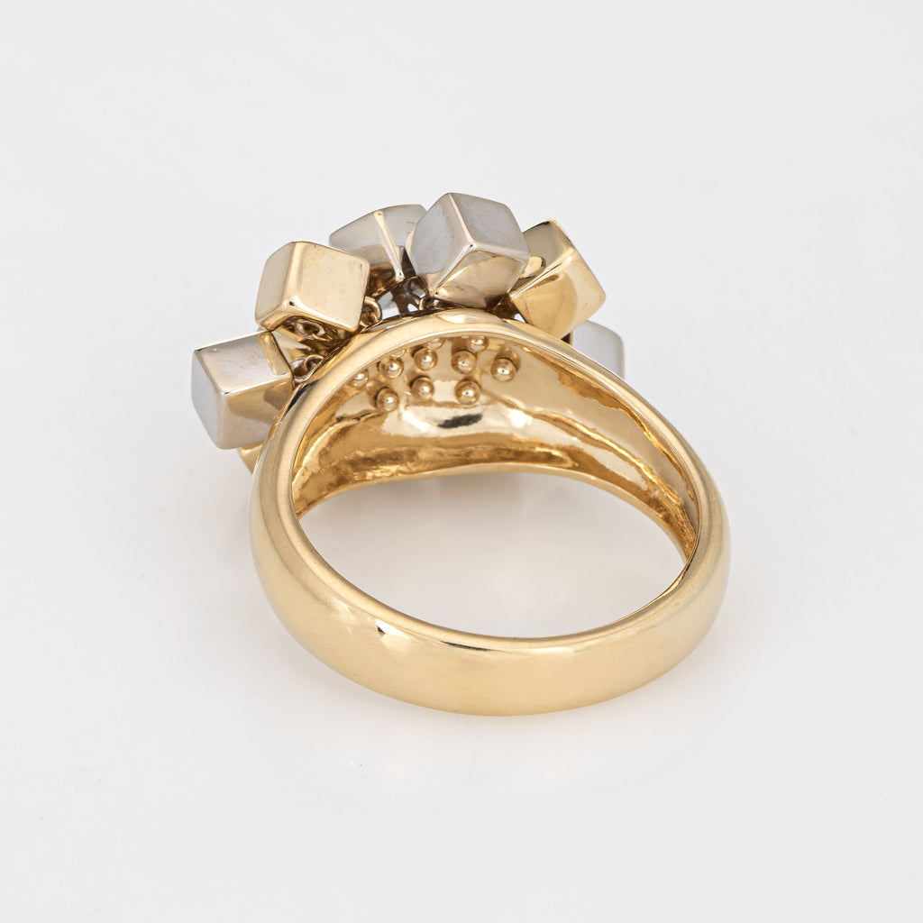 Stylish estate cube charm ring crafted in 14 karat yellow & white gold.