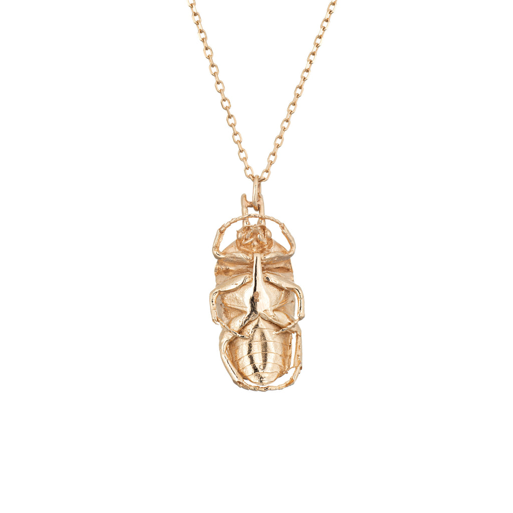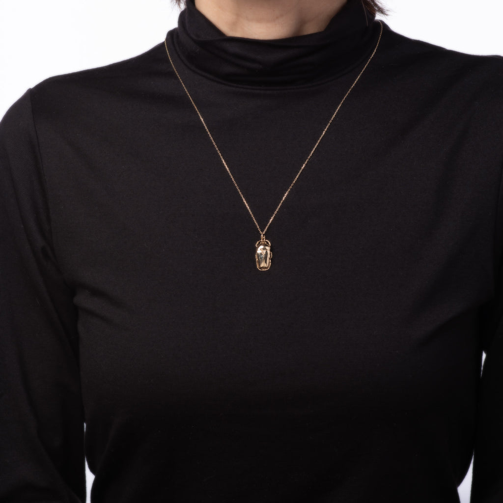 The scarab is a protective charm, promoting luck and harmony. It symbolizes rebirth and eternal life. The necklace is ideal worn alone or layered with your fine jewelry from any era.