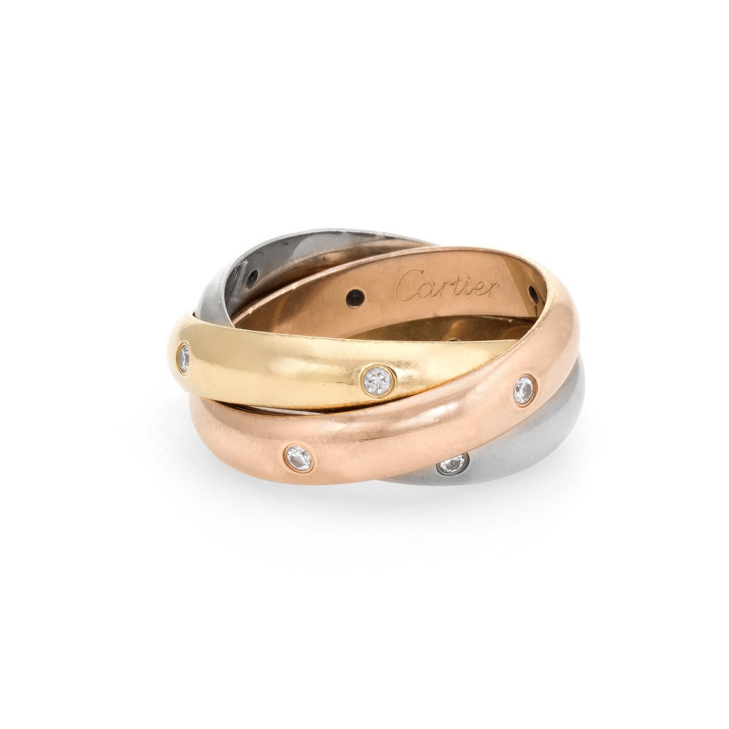 Cartier Diamond Trinity Ring Sz 50 US 5 1/4 18k Tri Gold Box + Papers Estate