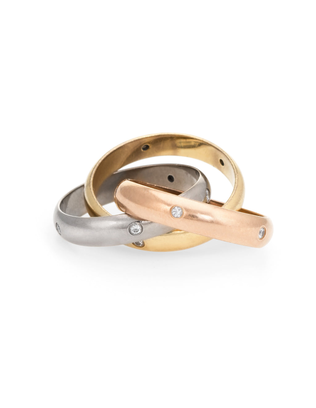 Pre owned Cartier Trinity diamond ring, crafted in 18 karat yellow, rose and white gold.