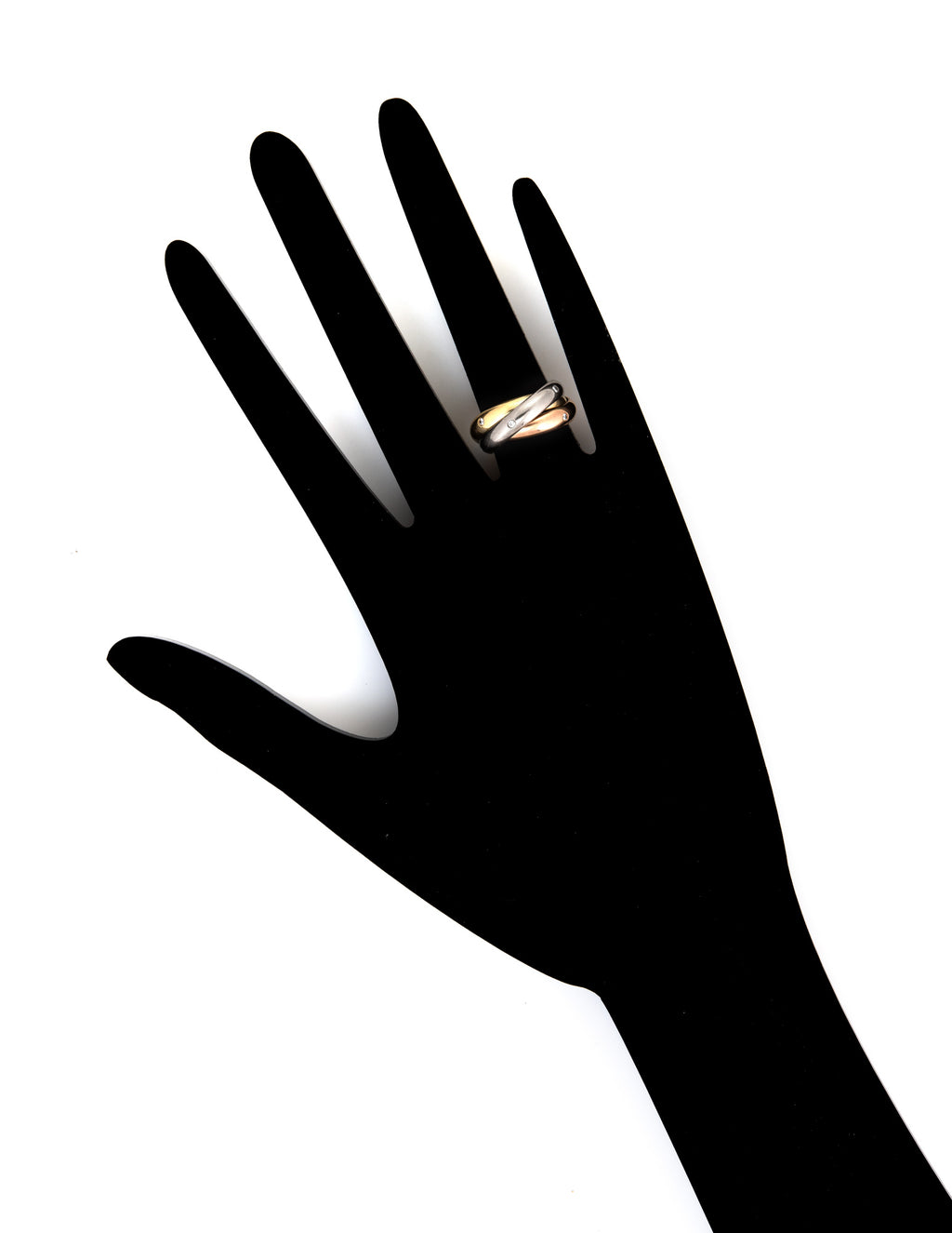 Metal & Hallmark: 18 karat yellow, rose and white gold. The ring is hallmarked "750" for platinum, "Cartier" along with the serial number and the ring size "50”.