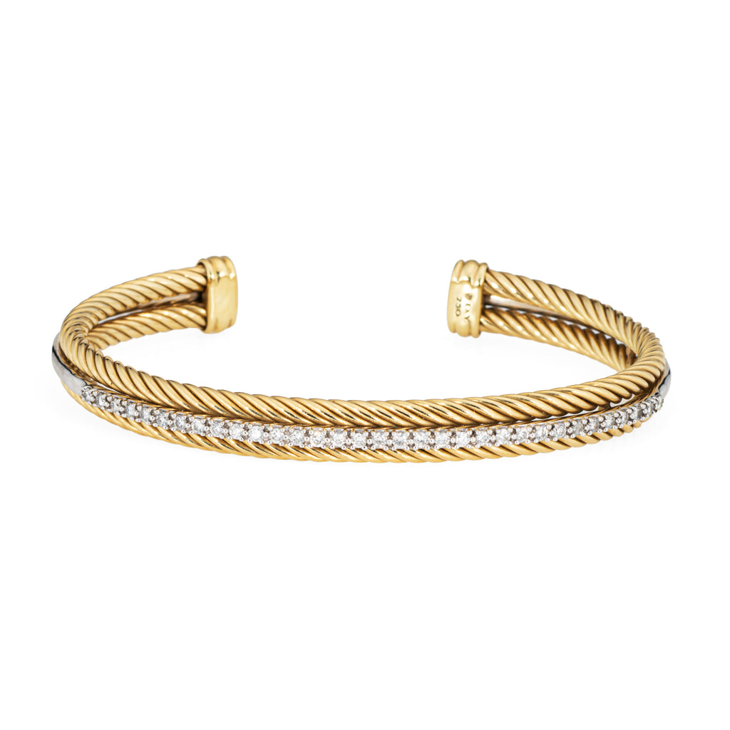 Estate David Yurman diamond cable cuff bracelet crafted in 18 karat yellow gold.