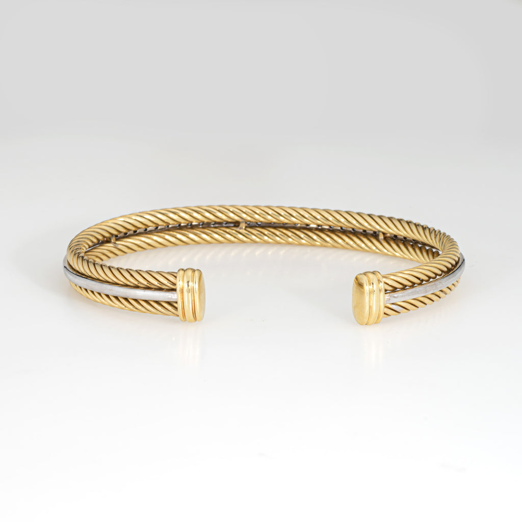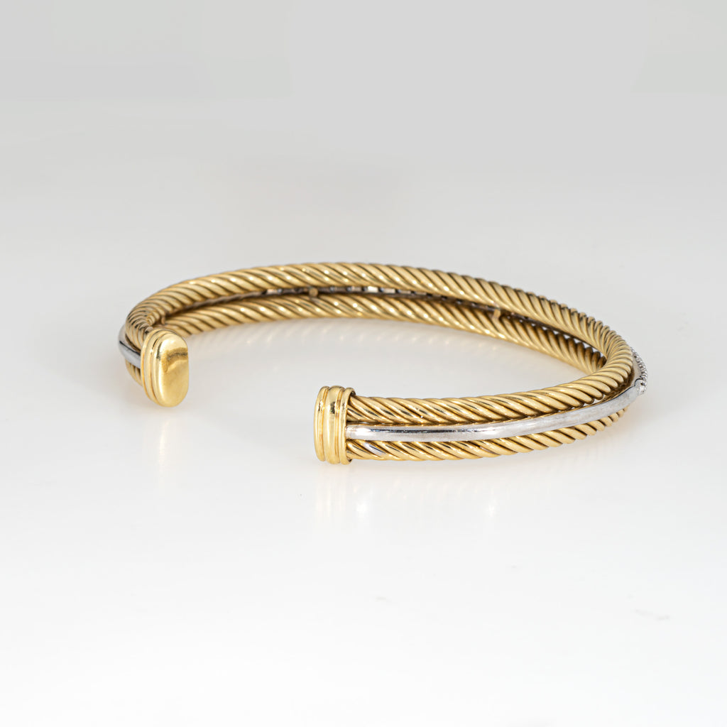 David Yurman Diamond Cuff Bracelet Estate 18k Yellow Gold Cable Signed Jewelry