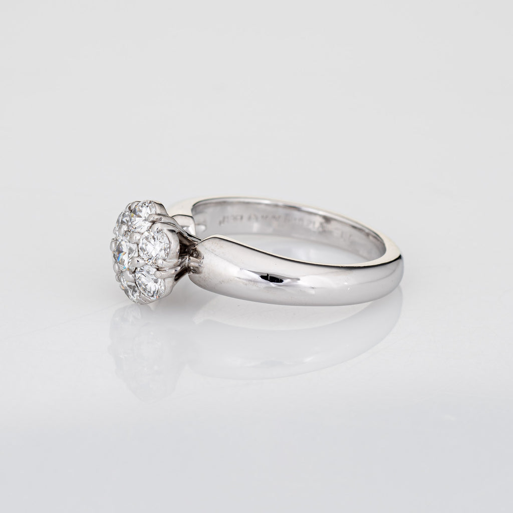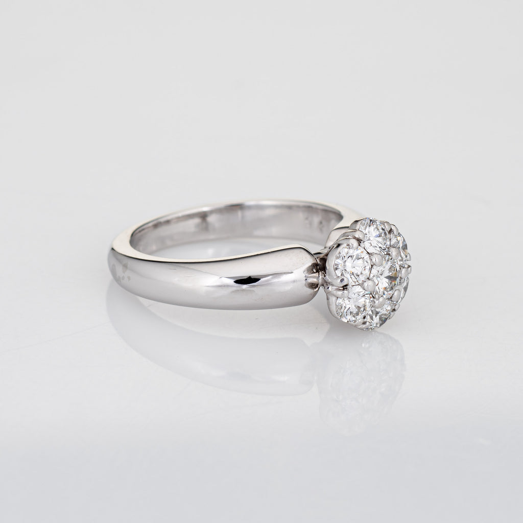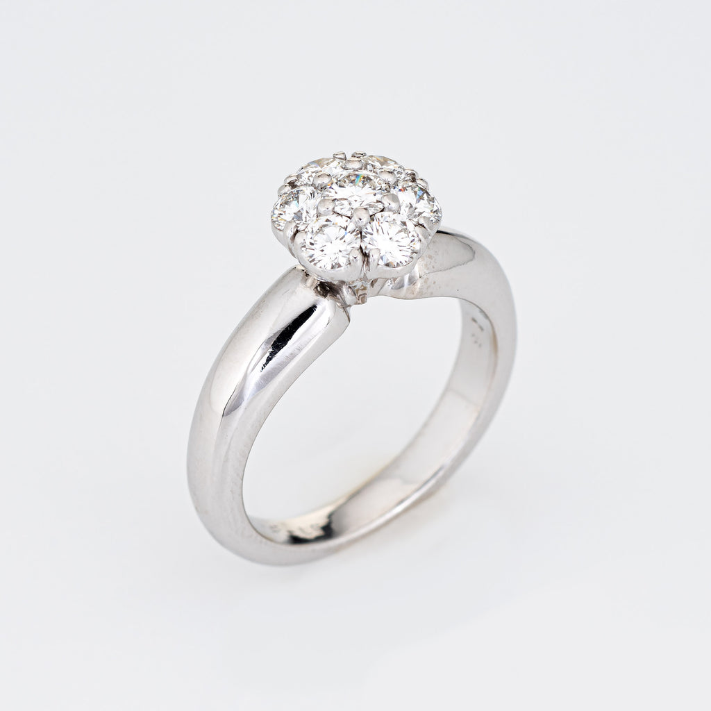 Stones: 7 round brilliant cut diamonds range in size from 0.10 to 0.15 carats and total an estimated 0.75 carats (estimated at F-G color and VVS2 clarity).