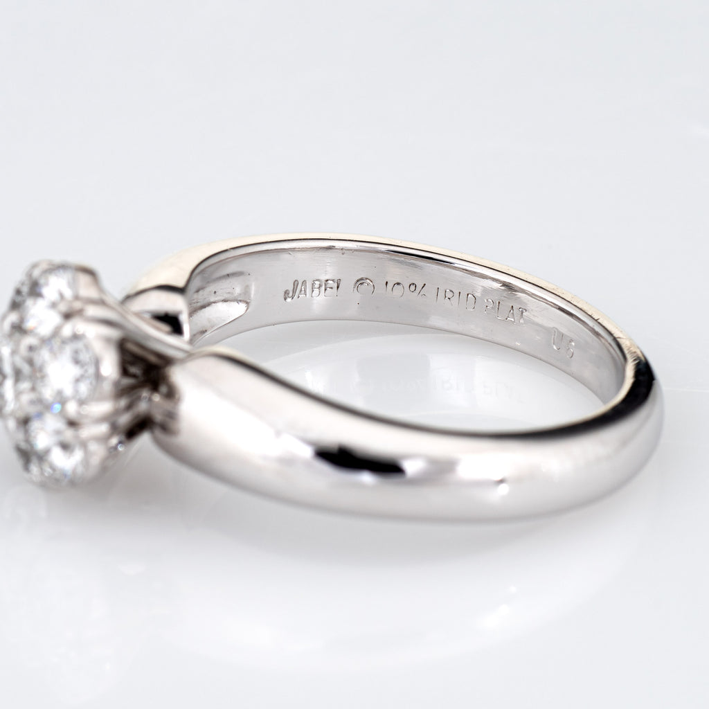 Metal & Hallmark: The ring is hallmarked "10% IRID PLAT" and "Jabel"