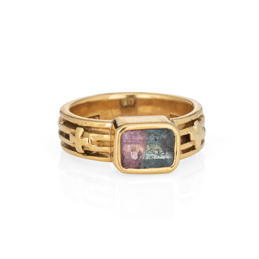 Stylish Loree Rodkin watermelon tourmaline ring, crafted in 18 karat yellow gold.