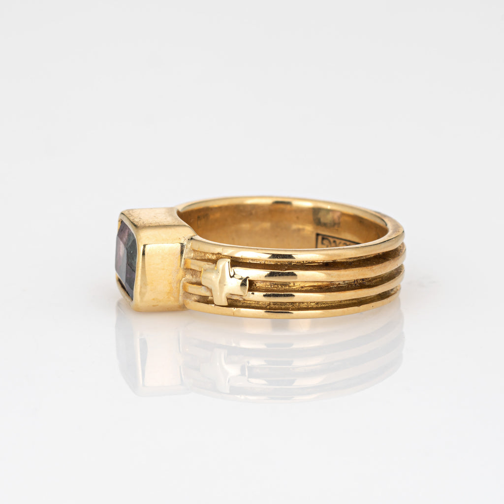 Size & Measurements: The ring is a size 7 3/4 (sizable). The band measures 7.5mm wide (0.29 inches), rising 5mm from the finger.