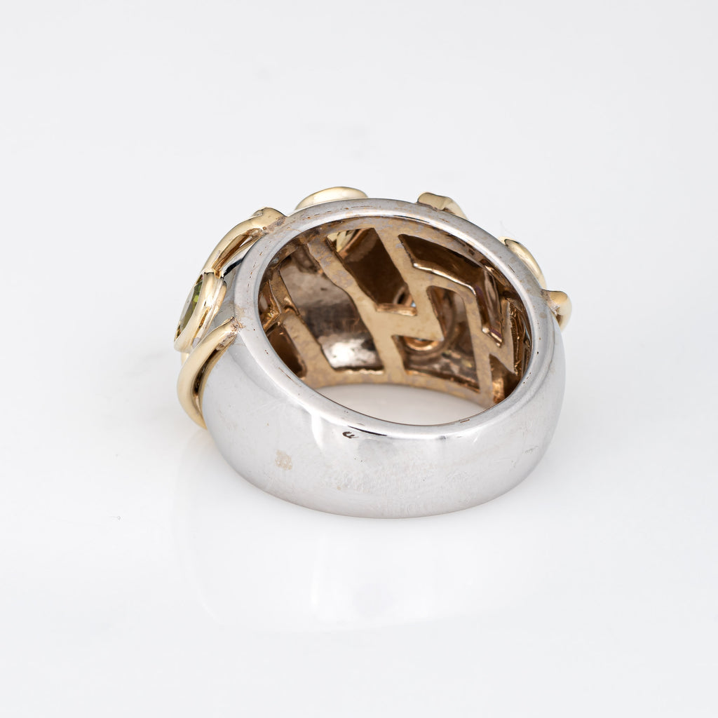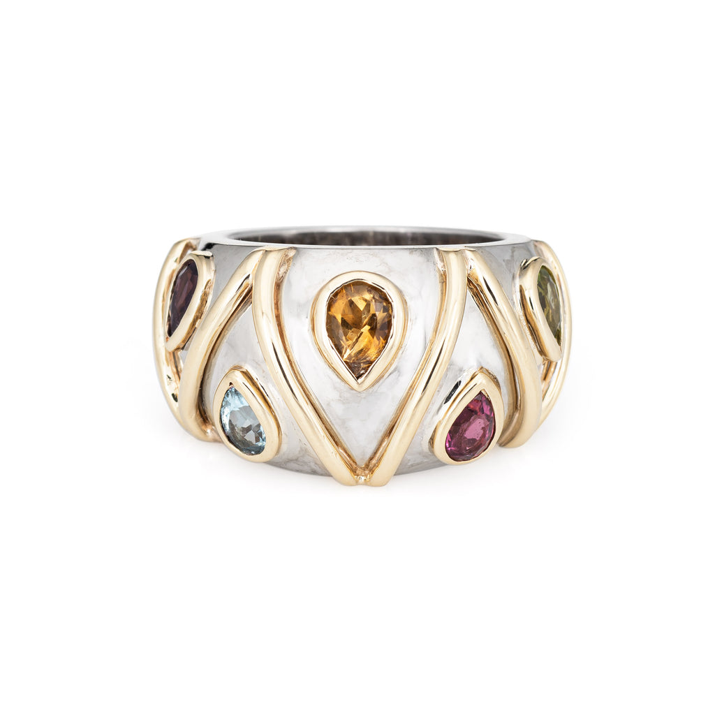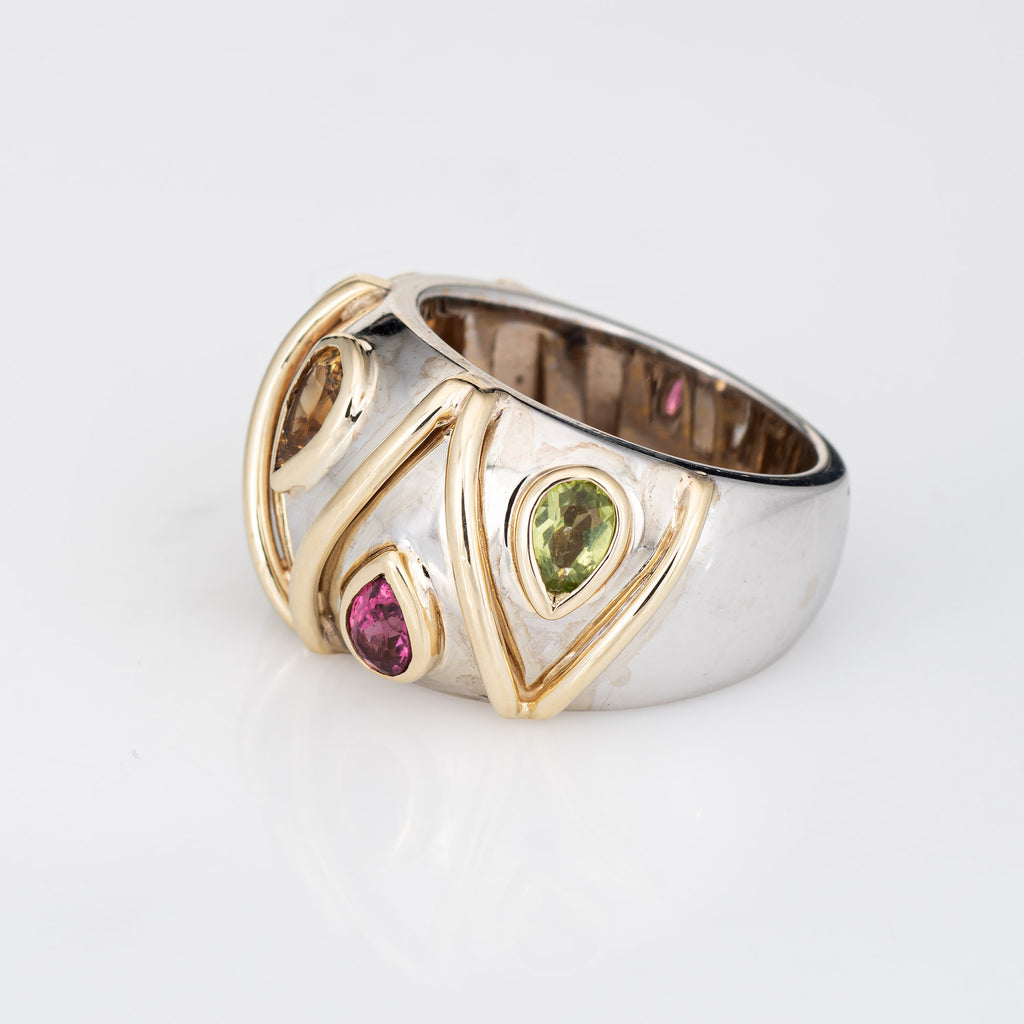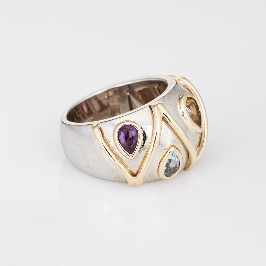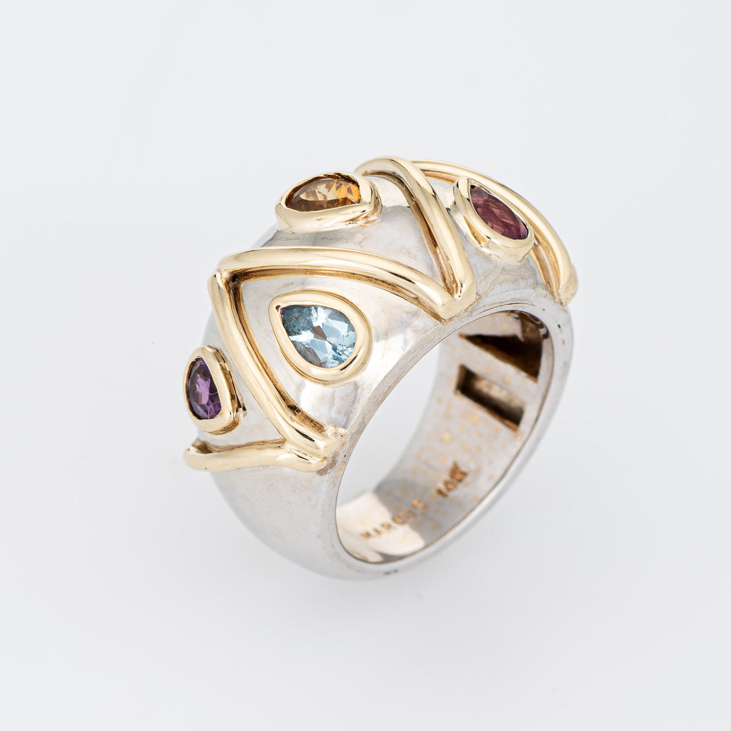 Stylish vintage gemstone wide band ring crafted in 14 karat white & yellow gold.