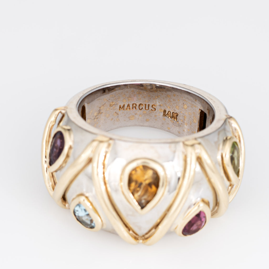 Metal & Hallmark: 14 karat white & yellow gold. The ring is hallmarked "14k" and "Marcus"