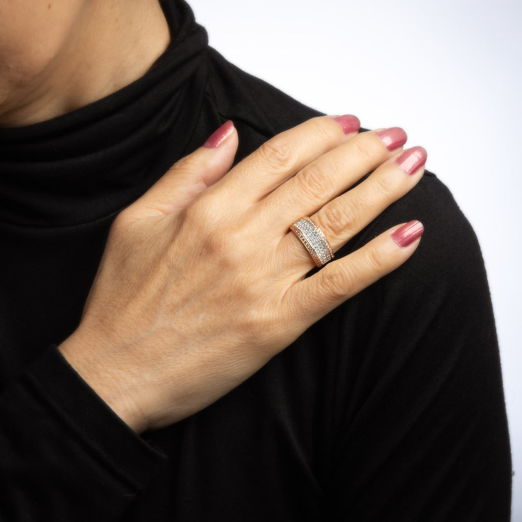 Elegant estate Simon G band from the Caviar Collection, crafted in 18 karat rose and white gold.