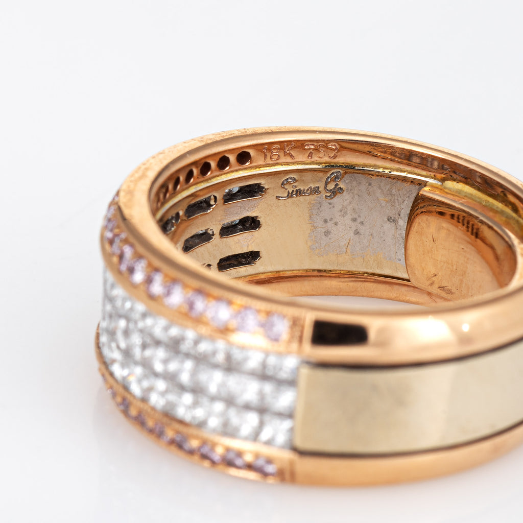 Metal & Hallmark: Solid 18 karat rose & white gold. The ring is hallmarked "18k" and "Simon G"