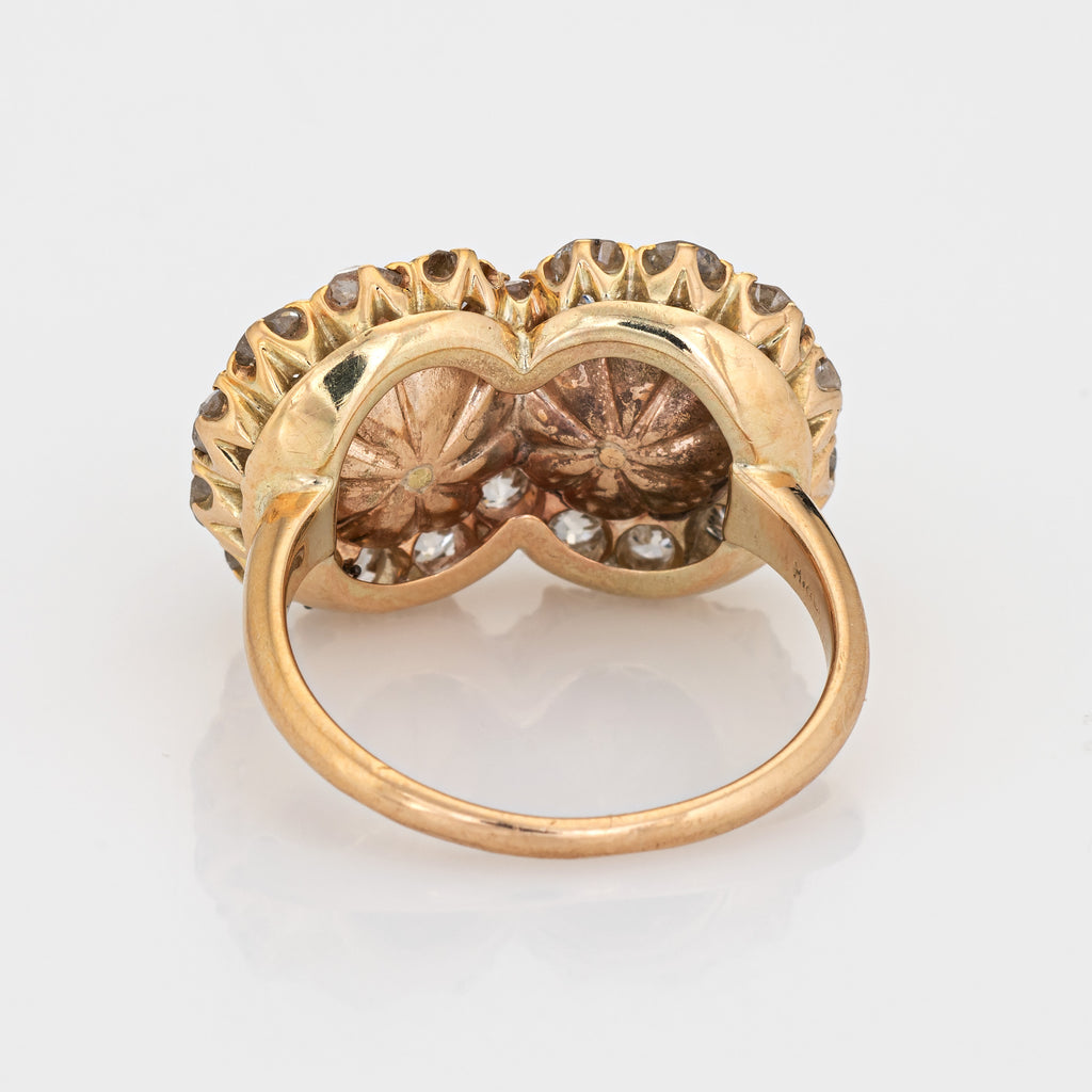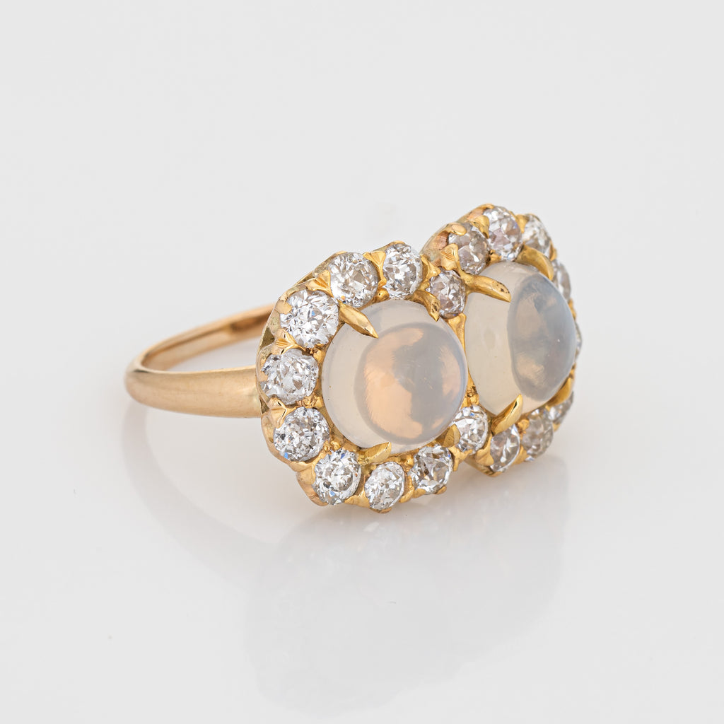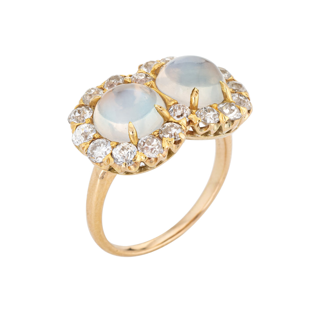 Stylish antique Edwardian moonstone & diamond ring (circa 1900s to 1910s) crafted in 14 karat yellow gold.