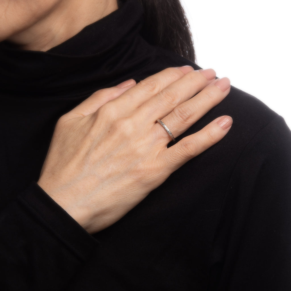 Size & Measurements: The ring is a size 6 (sizable). The band measures 2mm wide (0.07 inches) rising 2mm from the finger.