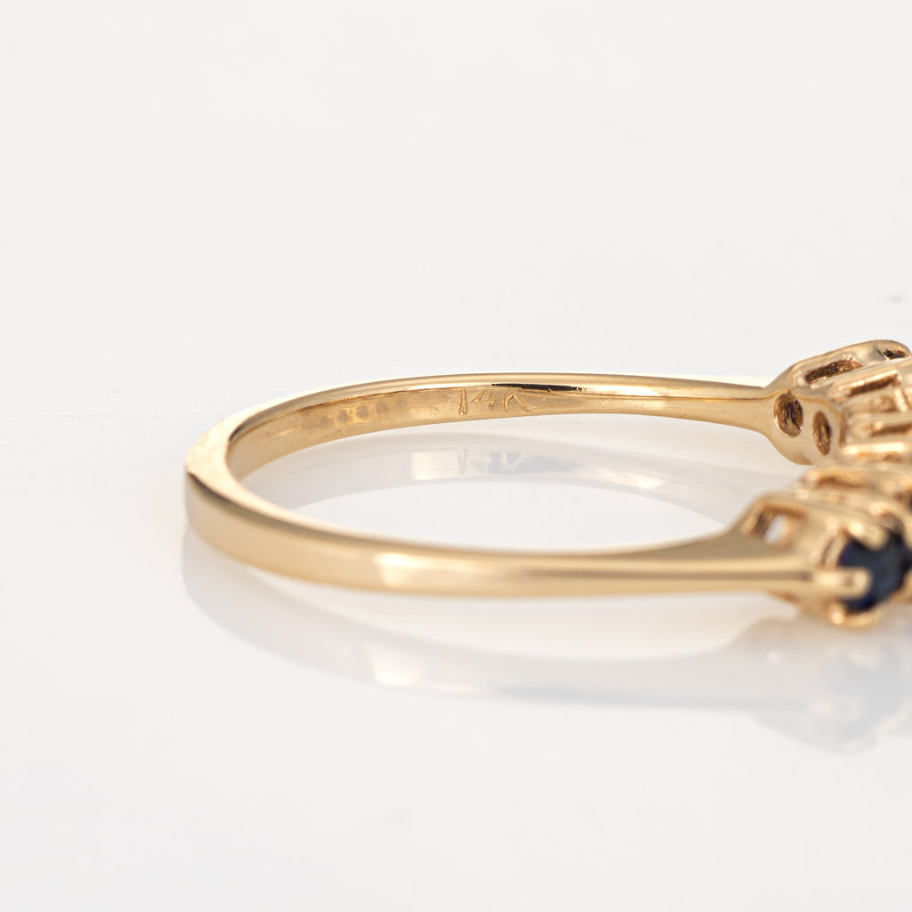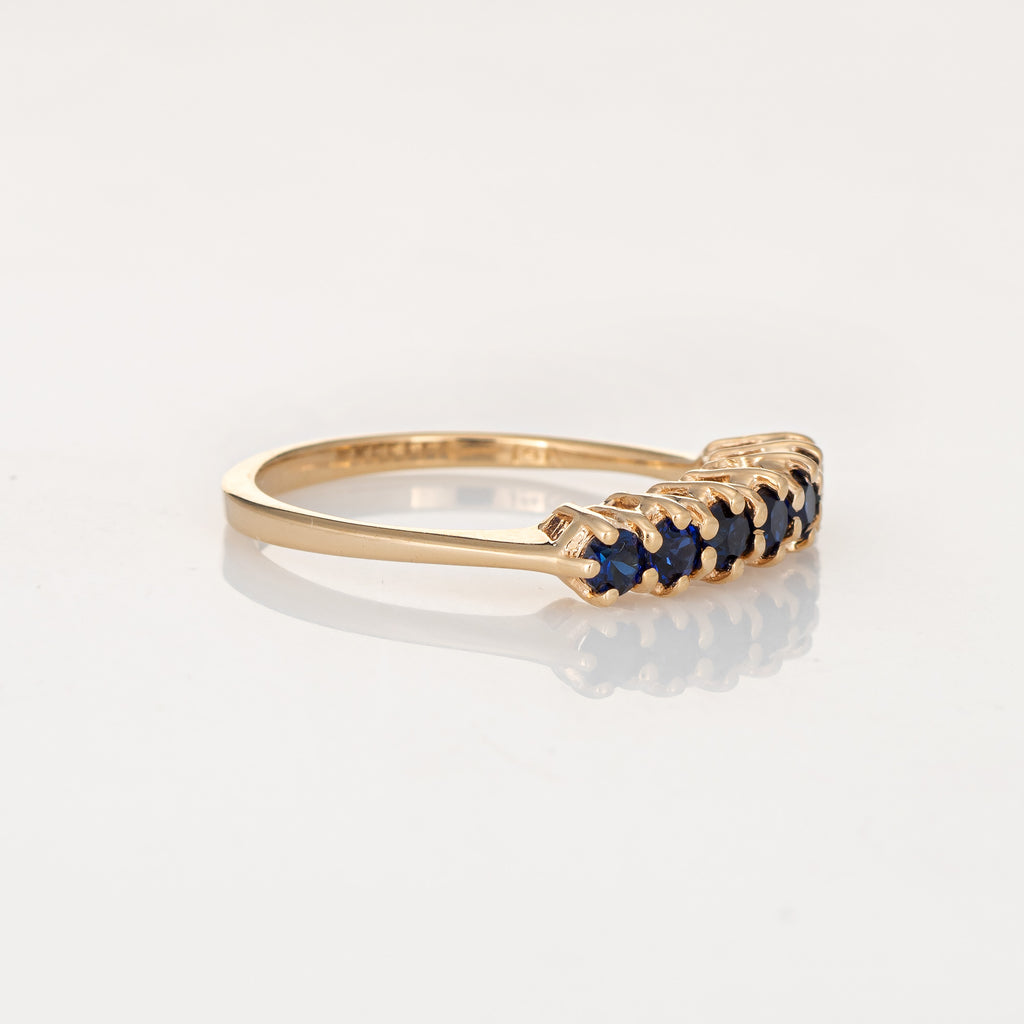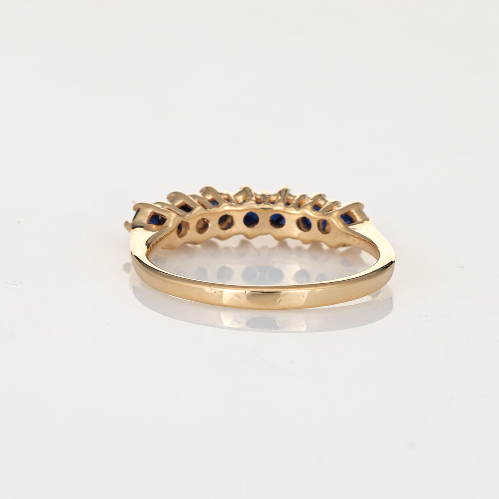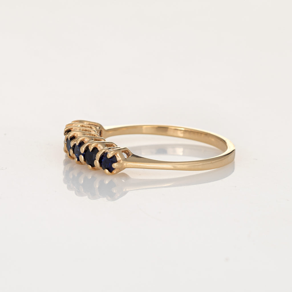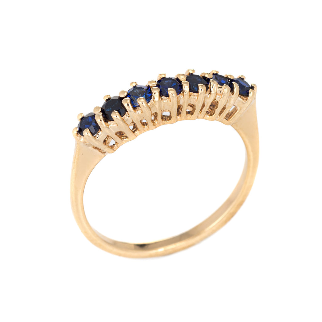 Vintage 7 Stone Sapphire Ring 14k Yellow Gold Anniversary Band Sz 5.5 Jewelry