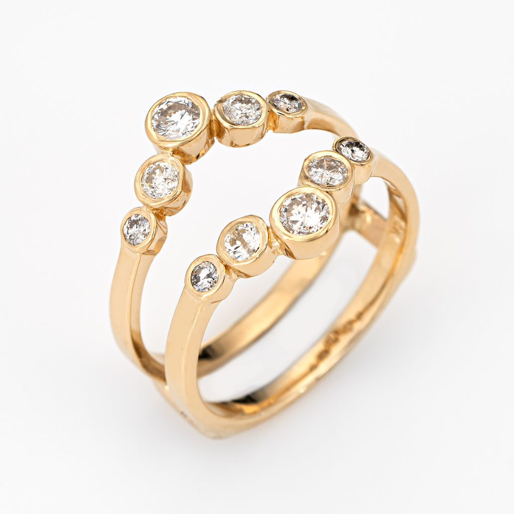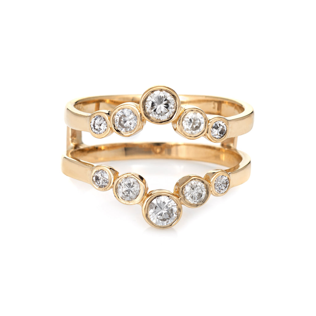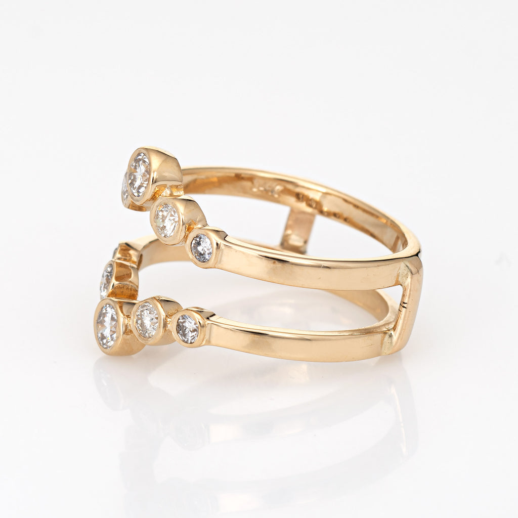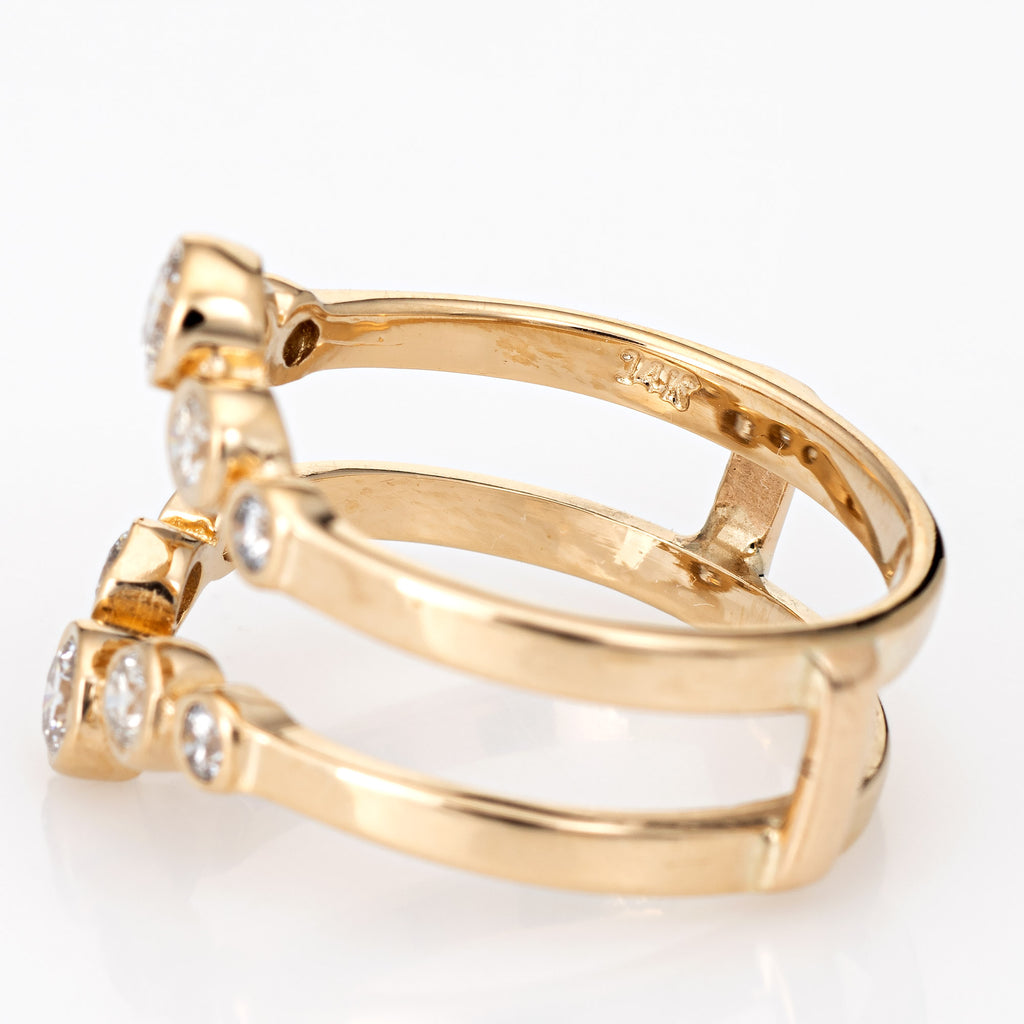 Diamond Wedding Ring Guard Wrap Vintage 14k Yellow Gold Estate Bridal Jewelry 6