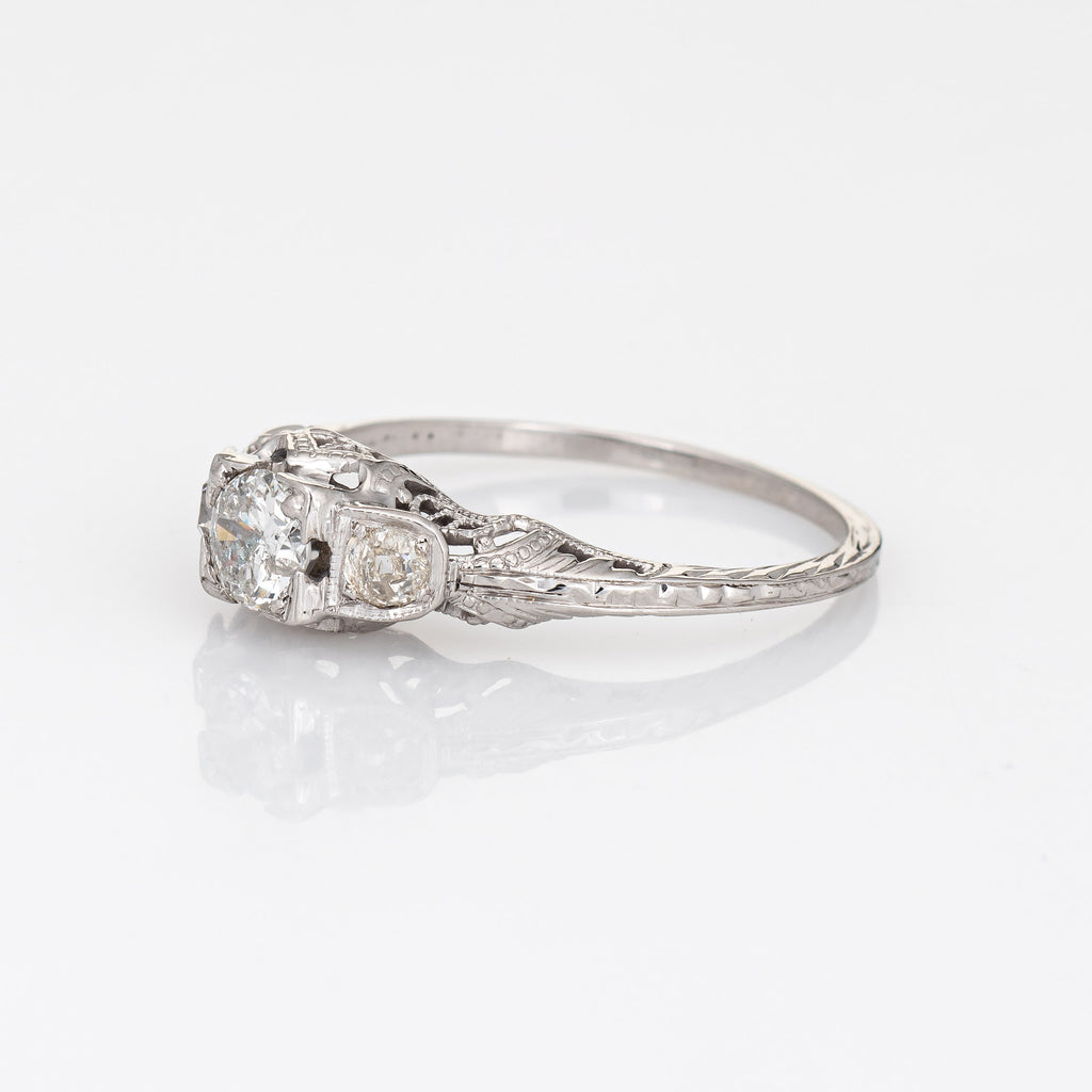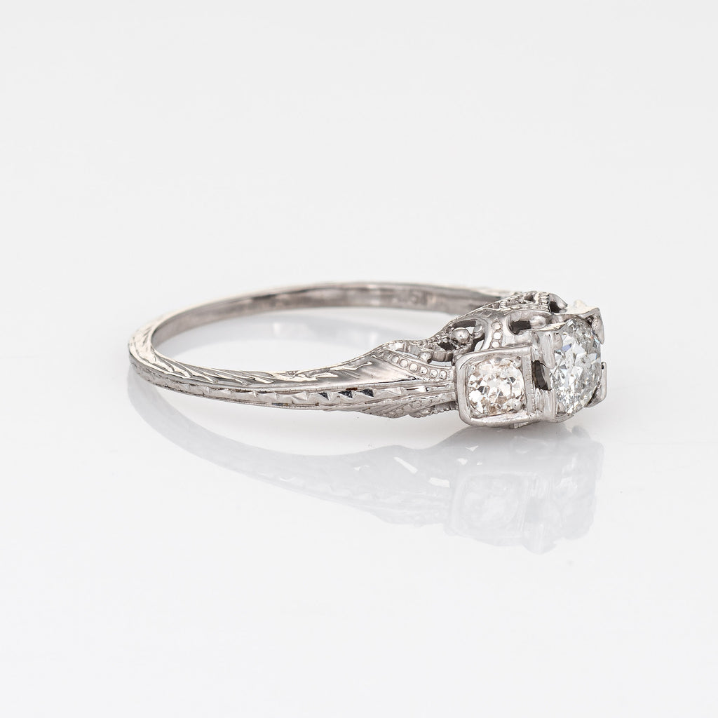 Elegant & finely detailed Art Deco era diamond engagement ring (circa 1920s to 1930s), crafted in 18k white gold.