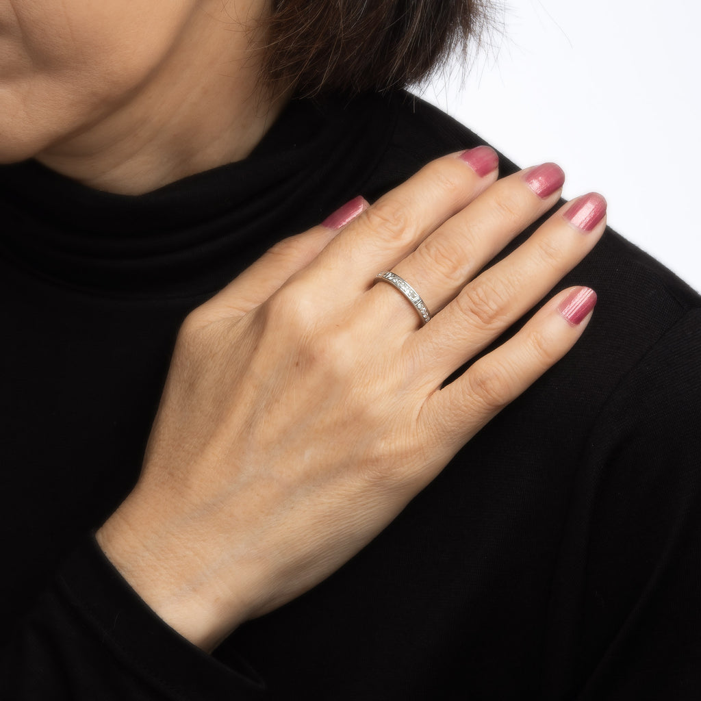 Finely detailed vintage Art Deco era diamond eternity ring (circa 1920s to 1930s), crafted in 900 platinum.