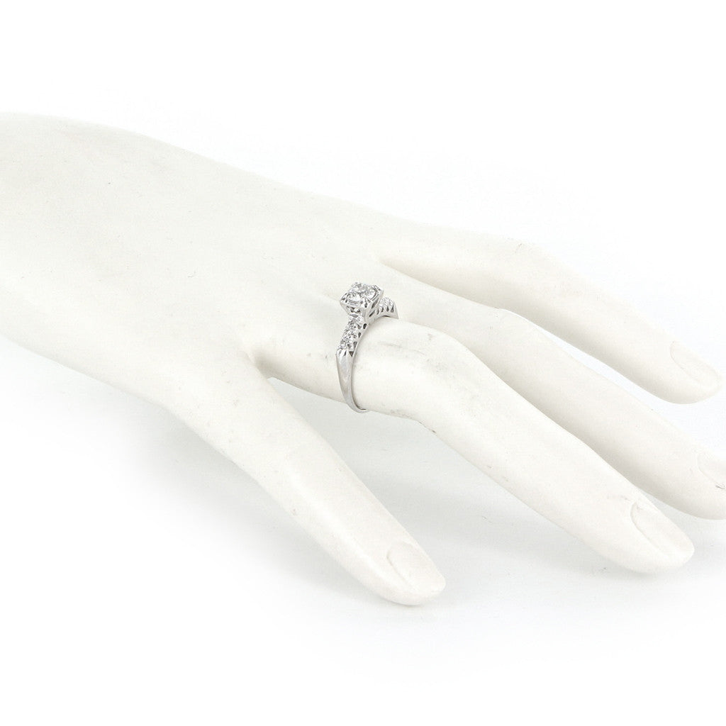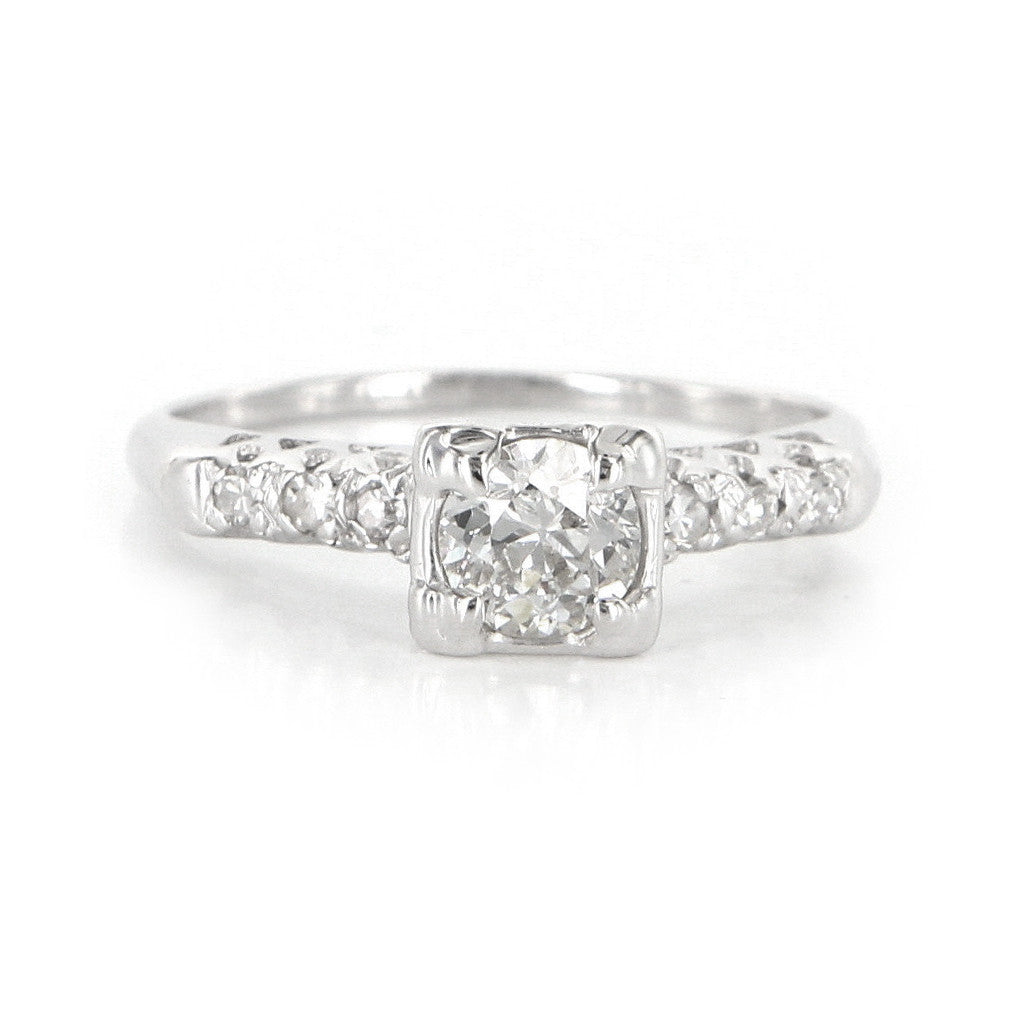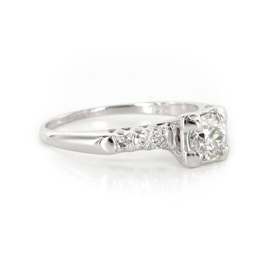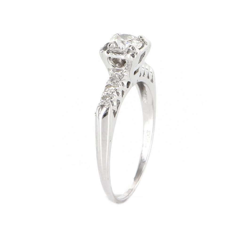 Art Deco era engagement ring (circa 1920s to 1930s), crafted in 14 karat white gold.
