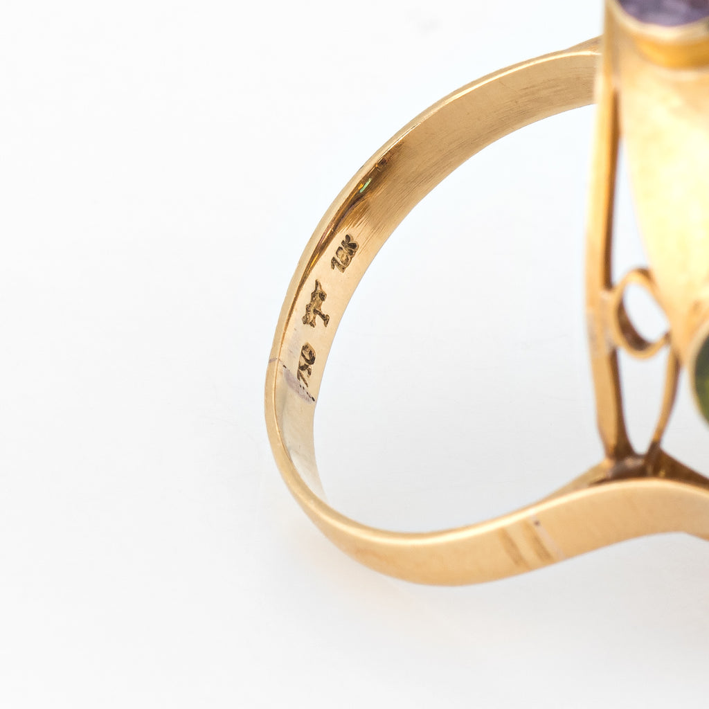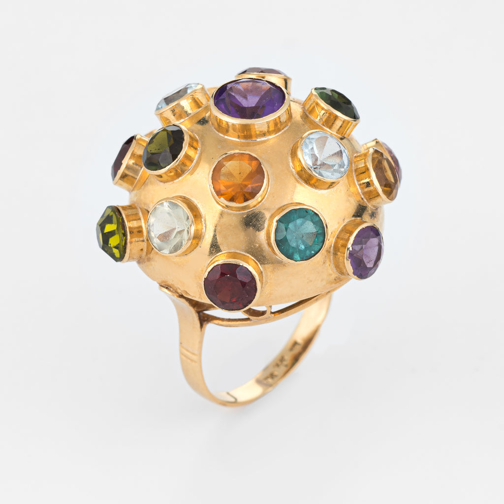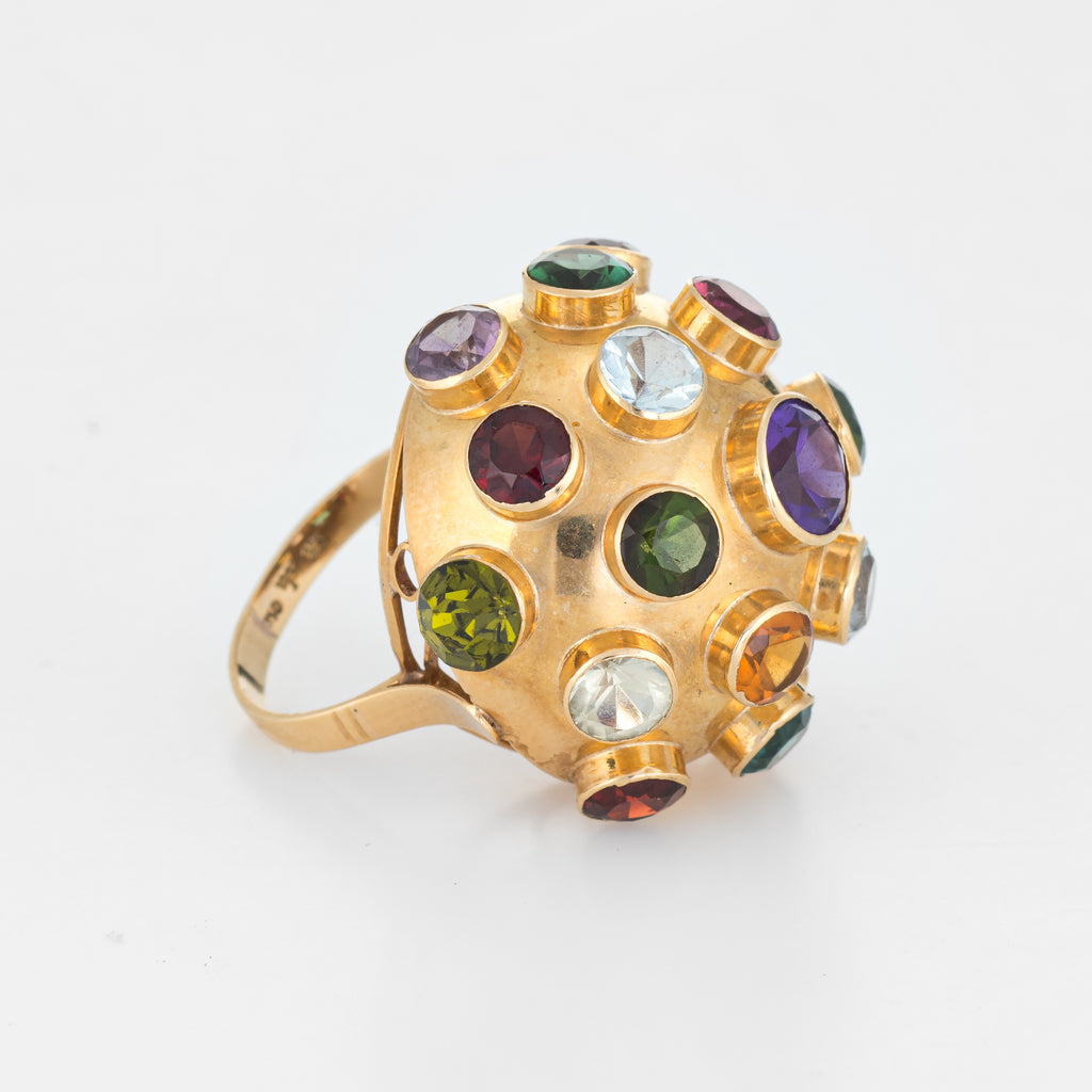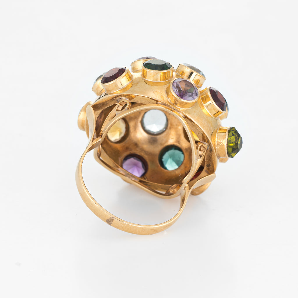 Ornate H Stern sputnik domed gemstone cocktail ring (circa 1950s to 1960s), crafted in 18 karat yellow gold.