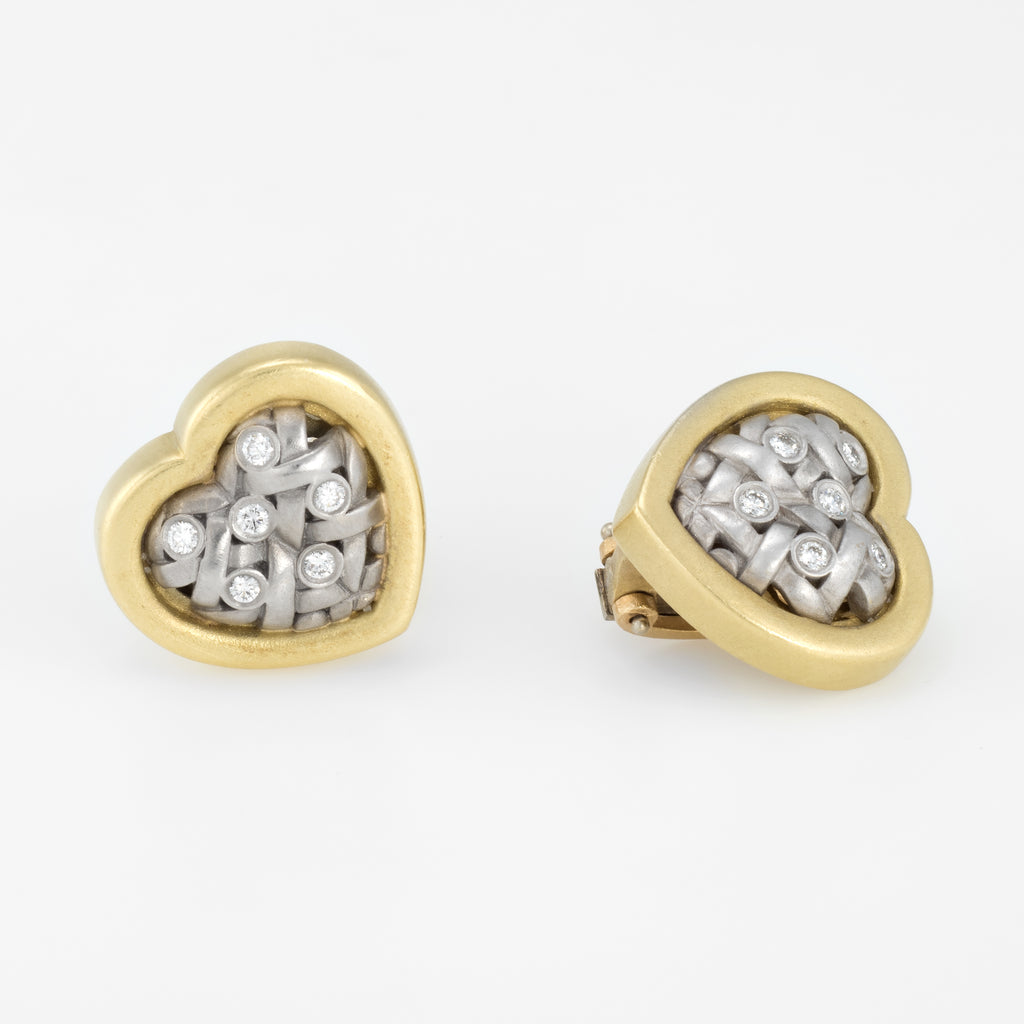 Kieselstein Cord Heart Diamond Weave Earrings Circa 2003