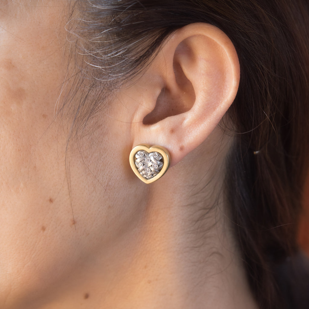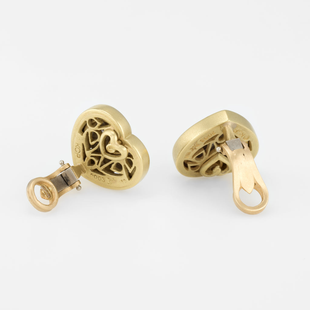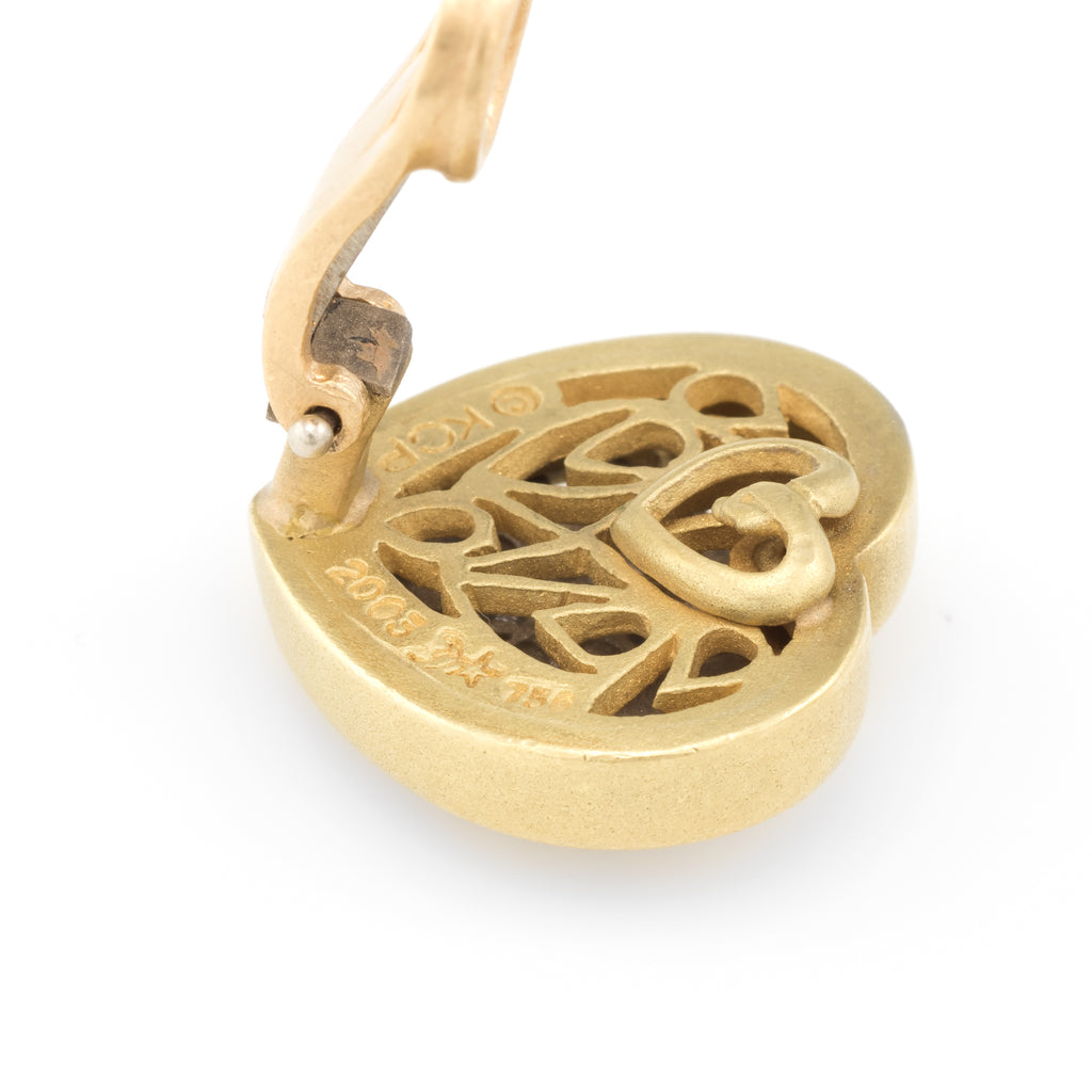 Elegant pair of Kieselstein Cord heart earrings, crafted in 18k yellow & white gold.