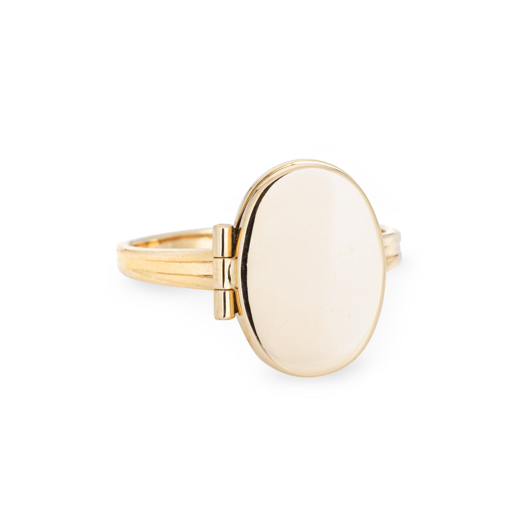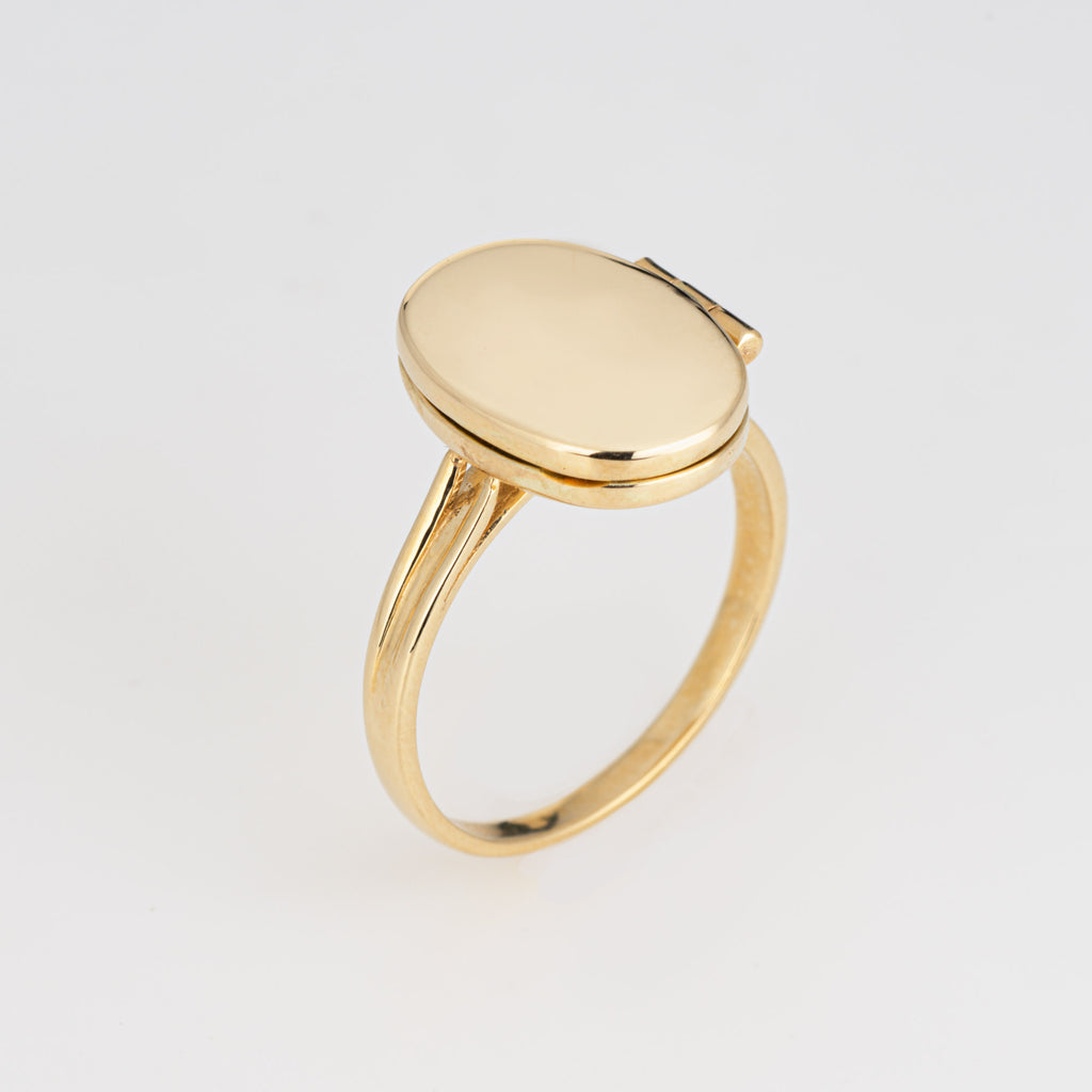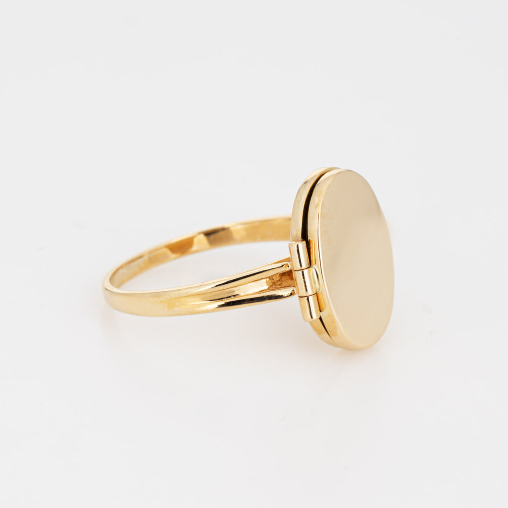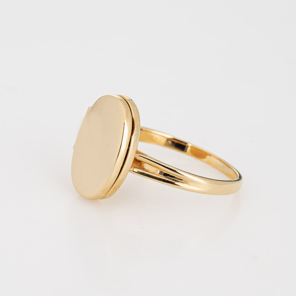 Picture Locket Ring 14k Yellow Gold Sz 8 Oval Secret Compartment Opens Jewelry
