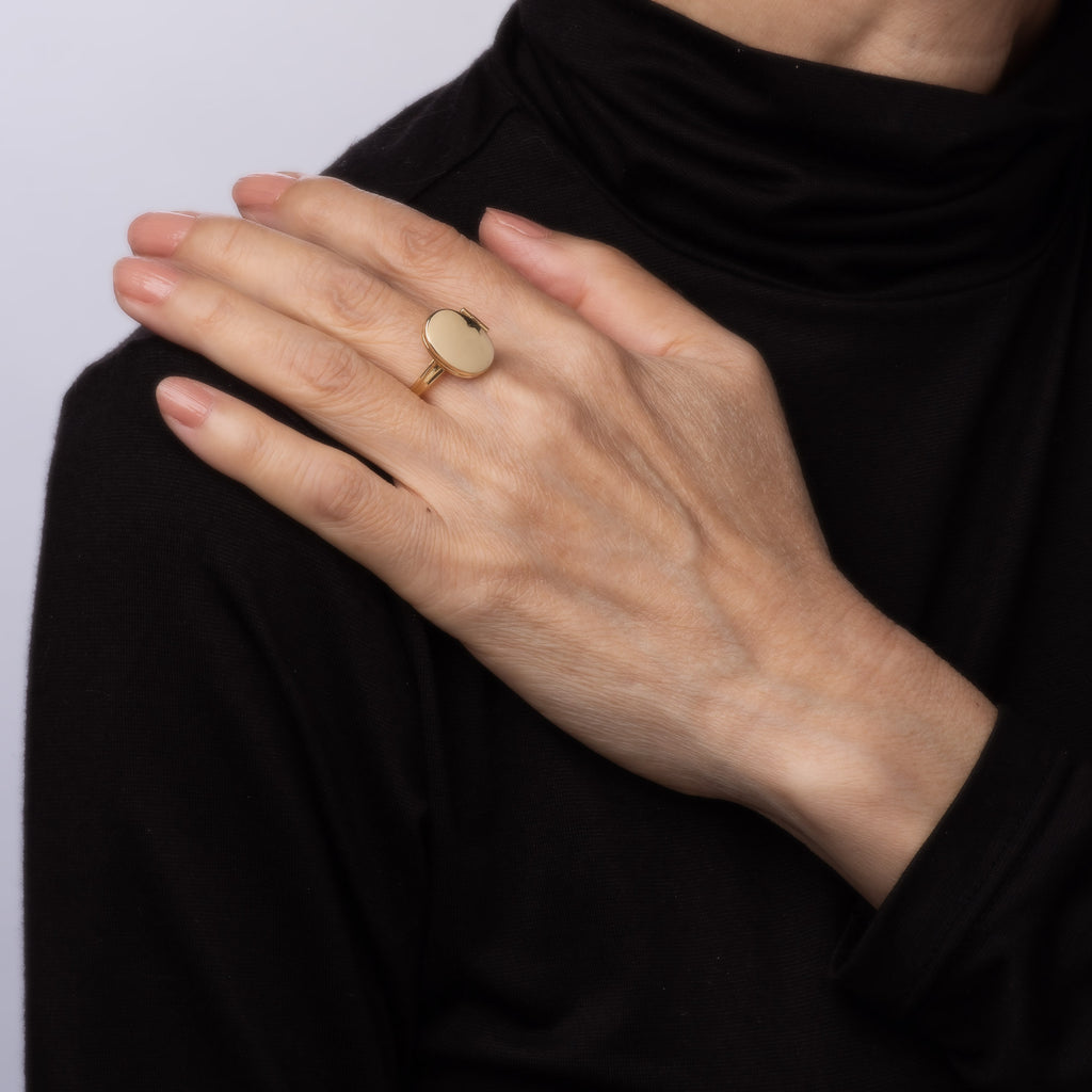 The oval shaped ring is a wonderful sentimental piece. The locket opens to reveal two sections that can accommodate a picture or keepsake. The low rise ring (5mm - 0.19 inches) sits comfortably on the finger.
